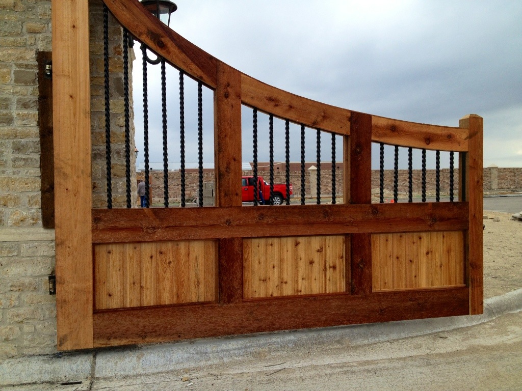 The cedar posts have a two tone color and top it off with the iron post look that you will see throughout the community keeping the Texas feel.