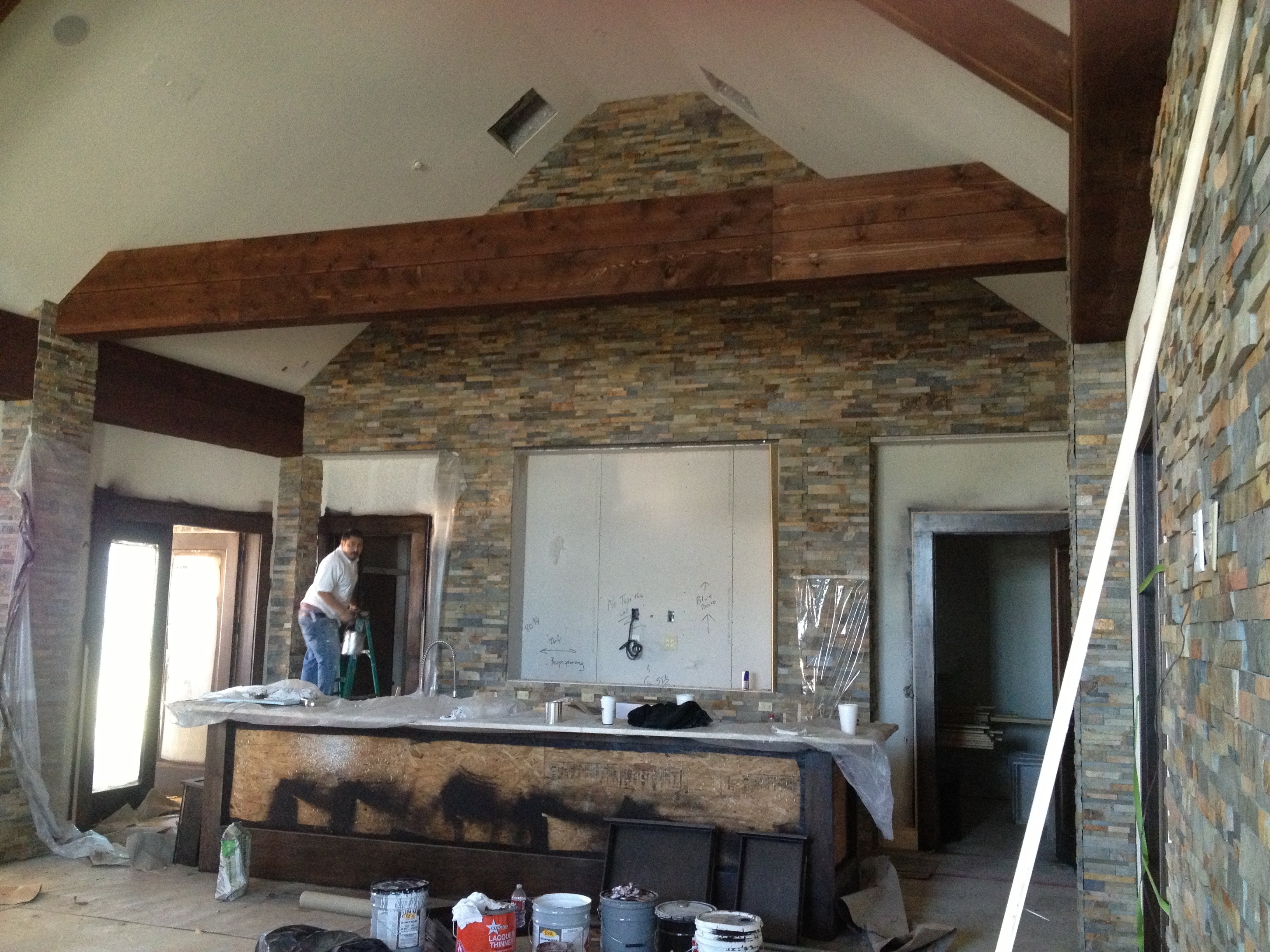 The concrete for the pool is near completion. The banquet rooms boast a beautiful stone facade with a large fireplace. The work out facility is huge and opens with large windows towards the pool area.