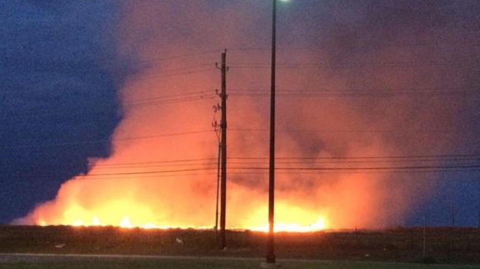 There are many fire trucks out there trying to get it under control. It looks very scary.