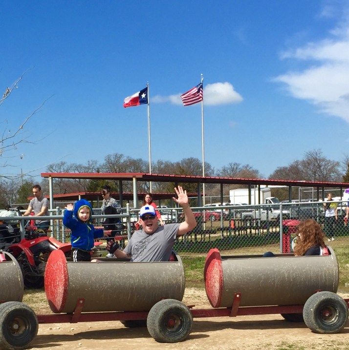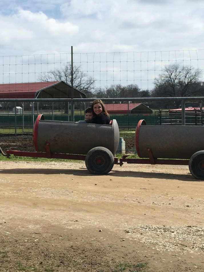 Next, we walked over to the barrel ride that looked like a long slithery snake pulled by a big tractor which was a HUGE hit with my 5 year old!