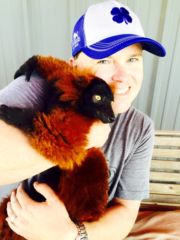 After the tram ride, I found out we could meet a Lemur which was the absolute highlight of the day! A worker brought out “Theodore”, a Lemur that they have raised since birth, and led us to a special area with some trees and fenced off from the rest of the ranch.