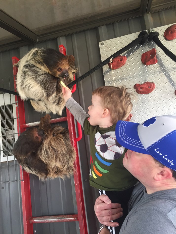 We then were told that we could meet the Sloths! Of course we were going to meet the sloths! So, all 4 of us were escorted in their humid habitat where we fed and pet both Jack and Jackie as they stared at us with their round creepy eyes! And ate SOOOOO slow! (This was an extra $35, but I like the opportunity to be one on one with unique animals.)