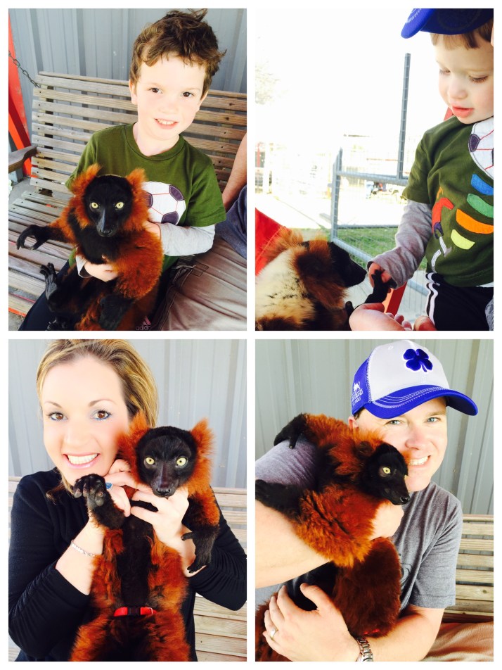 After the tram ride, I found out we could meet a Lemur which was the absolute highlight of the day! A worker brought out “Theodore”, a Lemur that they have raised since birth, and led us to a special area with some trees and fenced off from the rest of the ranch.