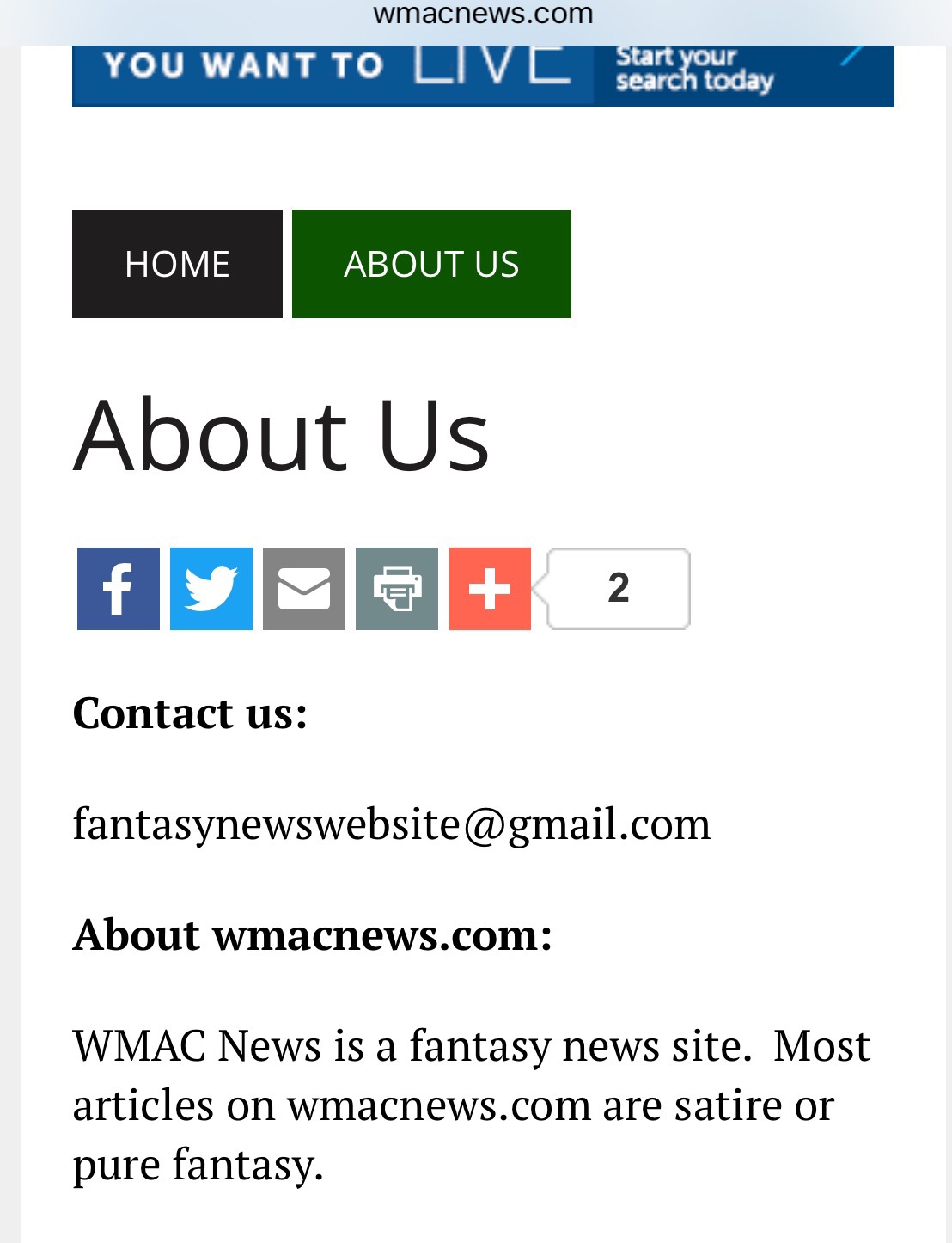 WMAC NEWS is a fantasy news site. Most articles on WMAC NEWS are satire or pure fantasy.