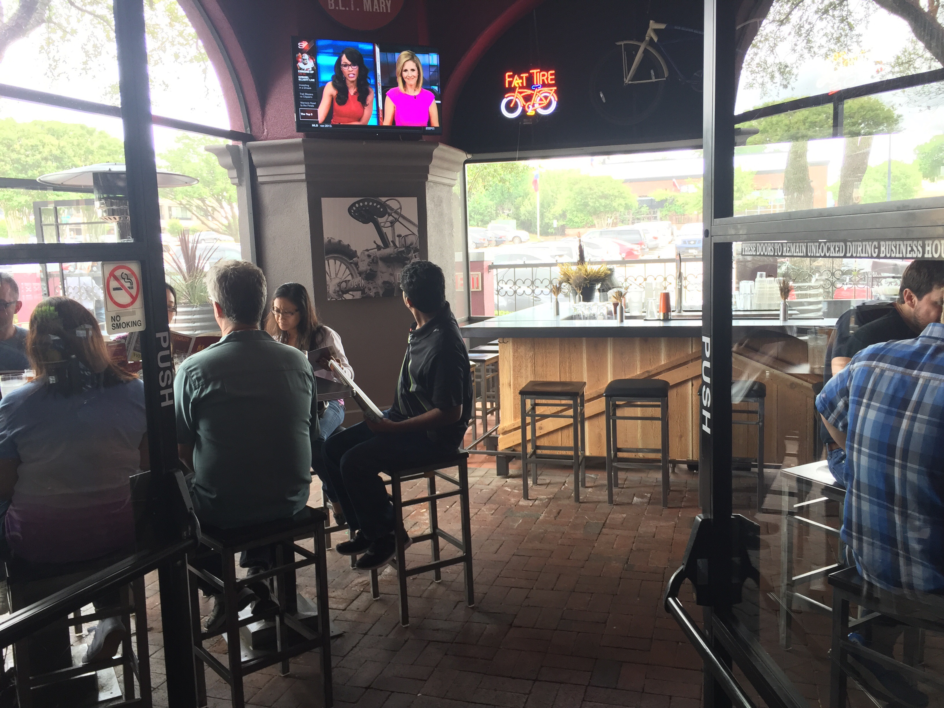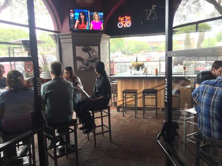 Hash House a Go Go has two bar areas and two outside seating areas on patios.  The ambiance is great with chatter and music not too loud.