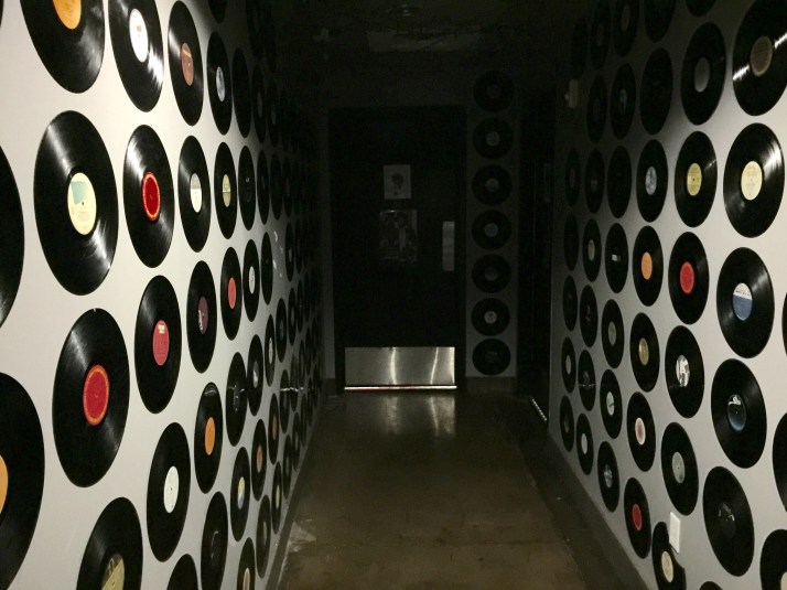 I went to wash my hands and started to take notice to the rock and roll decor. As I turned down the hallway to the bathrooms, to my amazement, both side walls were lined with old Vinyl Records from the ceiling to the floor! So cool!