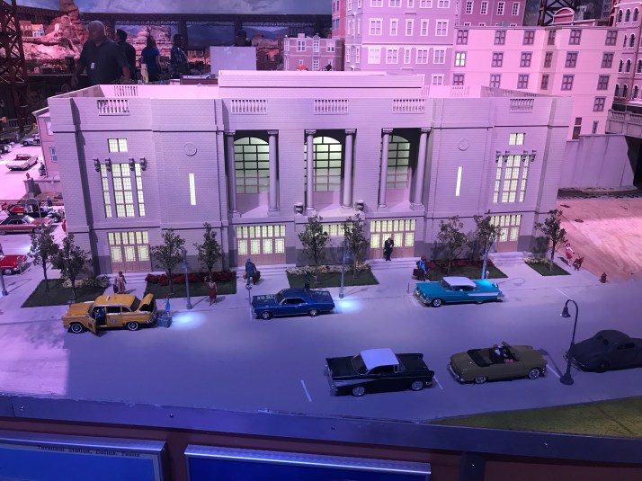 It is so elaborate that the lighting is set to a morning, dusk to dawn then to night time. At night, the lights come on everywhere. In the buildings, the light posts and even the headlights on the cars.