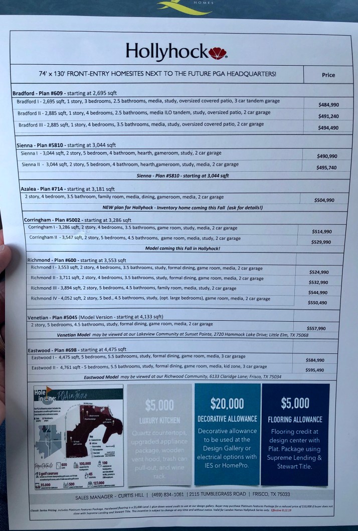 The opportunity to build a new home in Hollyhock by Landon Homes in Frisco by the new PGA golf course is here but won’t last long!