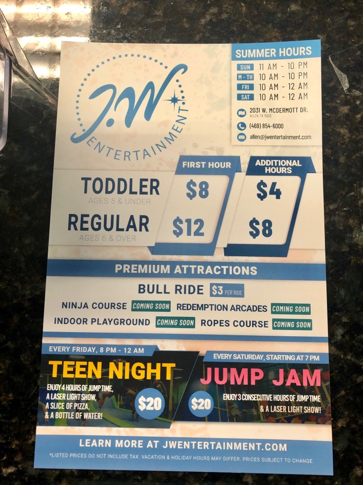 The new JW Family Entertainment located at the corner of Custer and McDermott in Allen is Open now!