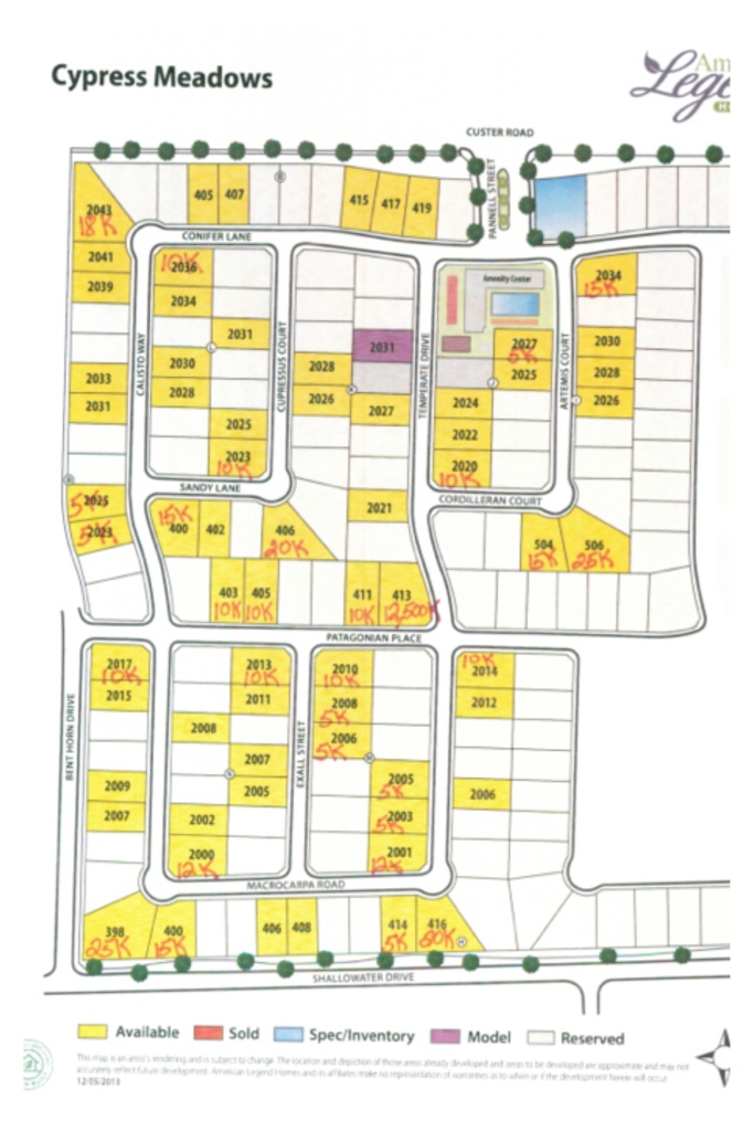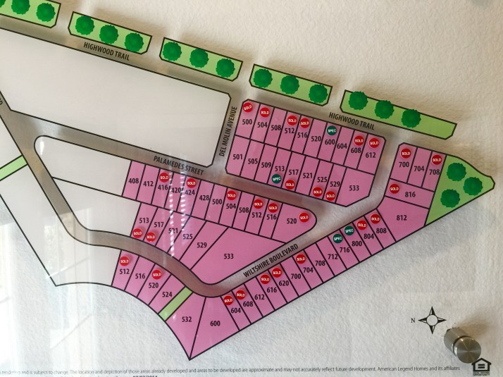 In the first Phase for American Legend, they have a total of 73 lots and have sold 20 as of yesterday, so some of the prime lots are still available. Highland and David Weekley do have a couple left that would be considered oversized or premium as well looking at their available lots.