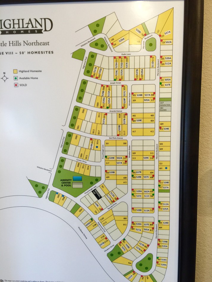 Zoom in and notice the pizza shape parcel right off the highway in an incredible location, that is Castle Hills Northeast. American Legend and Highland homes were the builders selected to open the community.