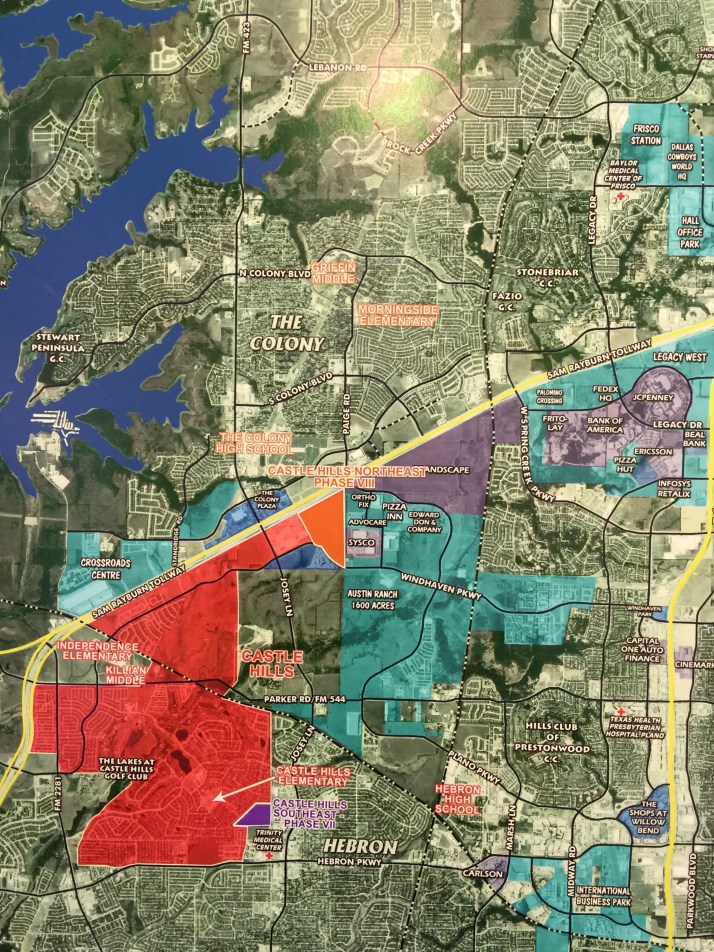 You can see the location in Red. If you follow the Tollroad directly South to the intersection of Highway 380 and North Dallas Tollroad, you will see three developments that are approved and well underway! This alone will start a tremendous amount of growth in the North sector and will ultimately create a new destination for buyers to choose from with Windsong Ranch also a mile away from the development.