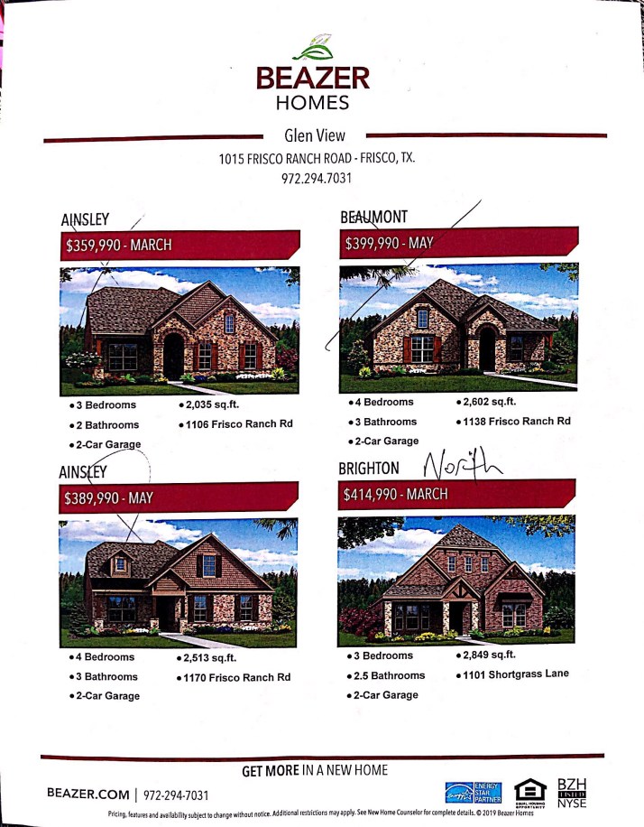 For more on Beazer Homes at Glen View in Frisco, text or call Brad Holden at (469)733-2723.