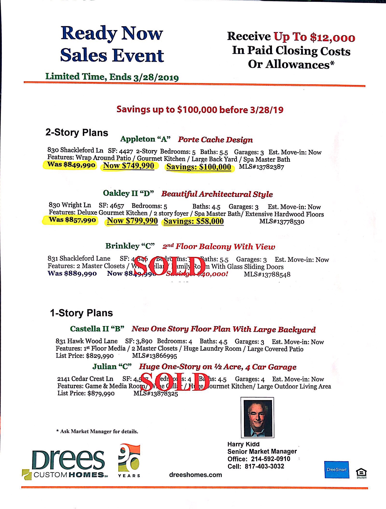 “Pre-Sales could begin as early as next week so make sure you inquire with Brad Holden via text or call at (469)733-2723. It is important to be one of the first on Pre-sales because the incentives are the best, prices as well and lot selection is number 1!”