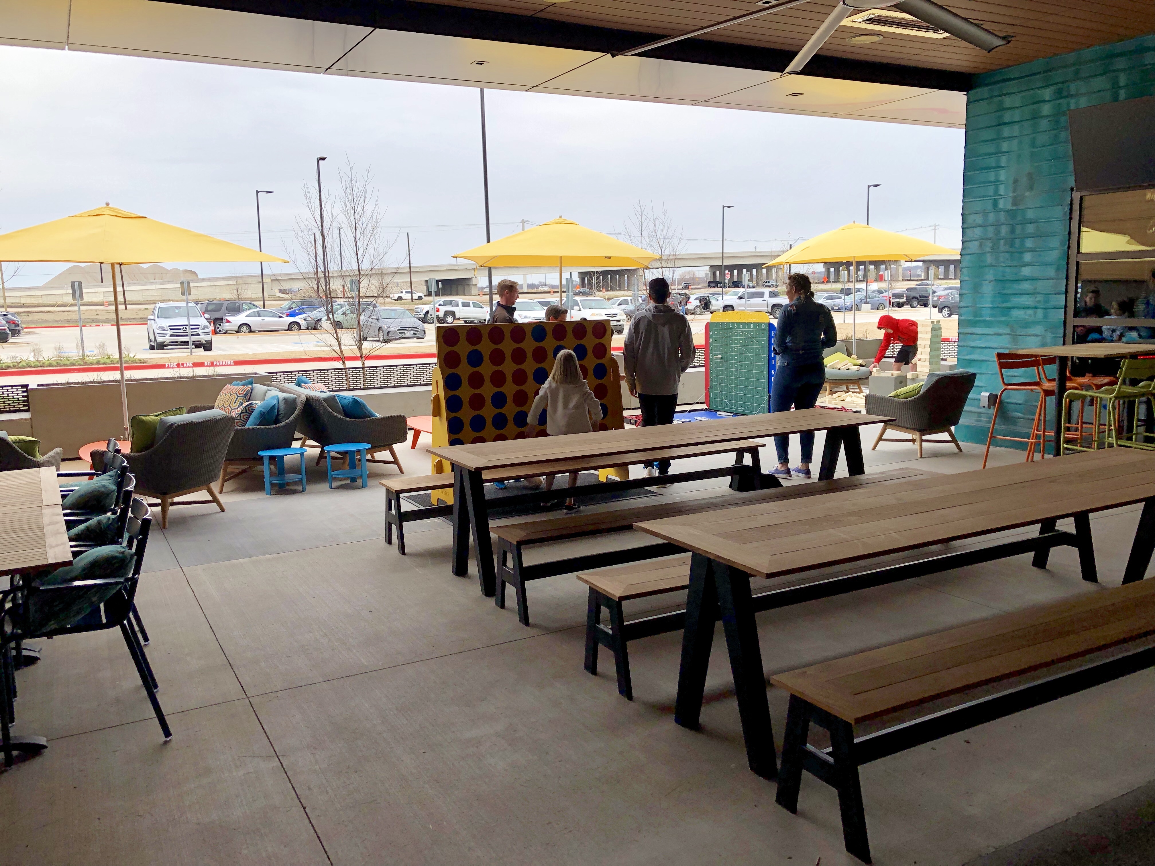 Cinemark threw in some Frisco design art elements and didn’t shy away from including high end tile on the walls and their flooring.