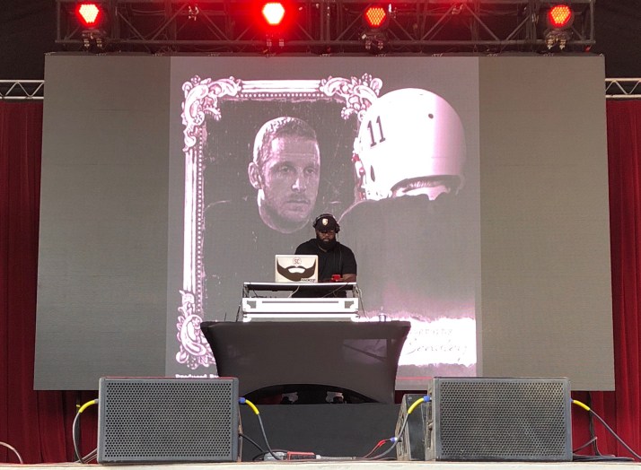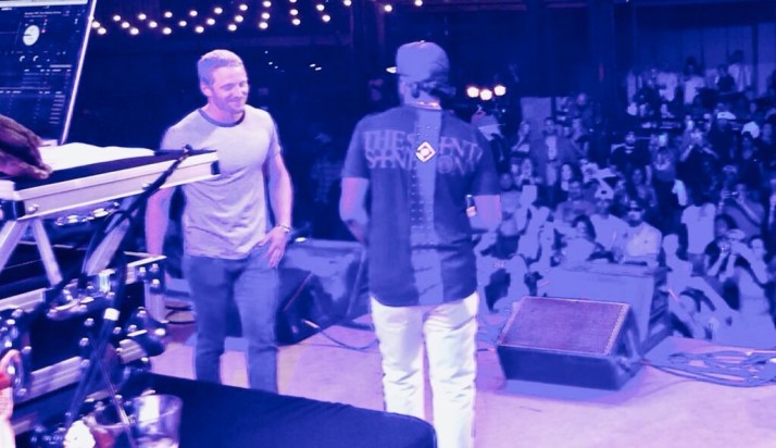 8:15pm – The sun set and we heard drumming like from a drum line coming from the stage. It turned out to be the Colony High School Marching Band that walked on stage to get the crowd roaring! Ben and Skin and Jeff Cavanaugh from 105.3 the Fan grabbed the mic to introduce Cole Beasley and his producer Victor “Phazz” Clark. He spoke about how they have formed Cold Nations Records and were blown away by the turnout!”