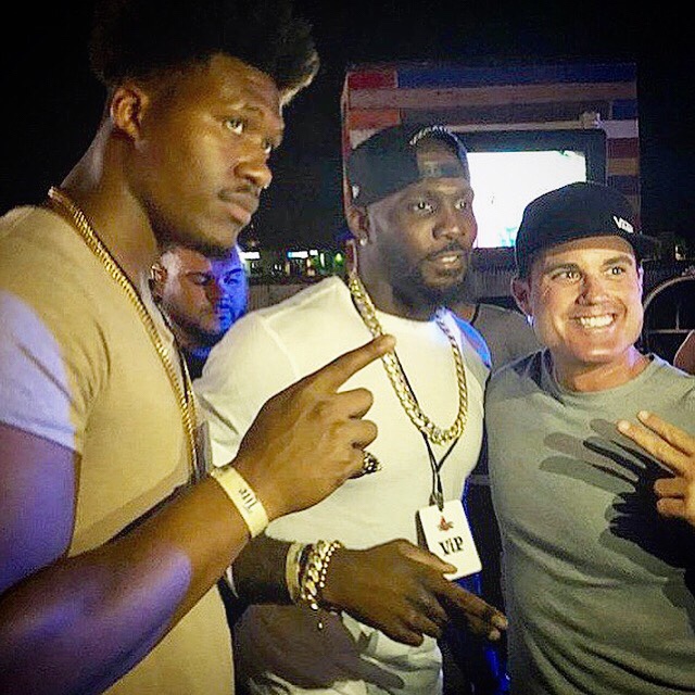 11:15pm – I look up at Roosevelt (Jerry Jones security guard) and he is leading someone in. Other than Jerry, who else would Rosie really need to be helping get through the crowd? He goes by the name of Desmond Bryant!