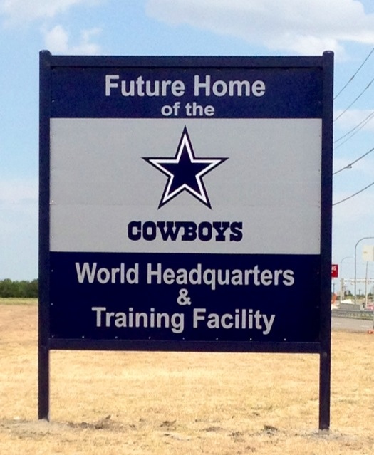 Now, across the street from the retail center the acres of flat open space has a new blue sign that reads: “Future Home of the Cowboys World Headquarters & Training Facility.”