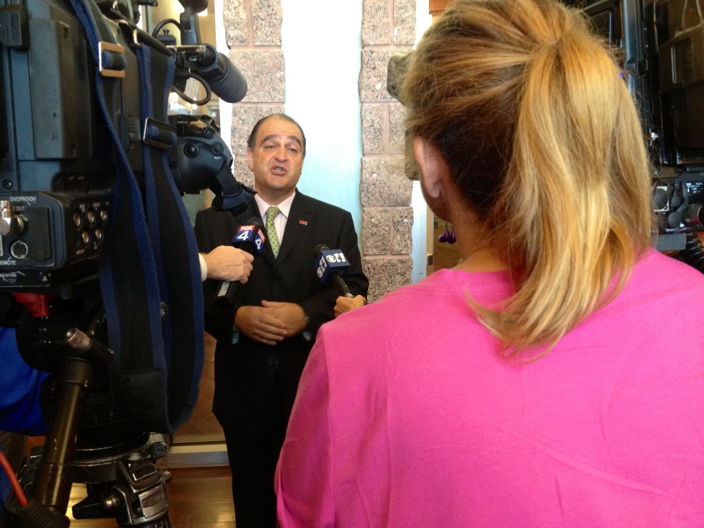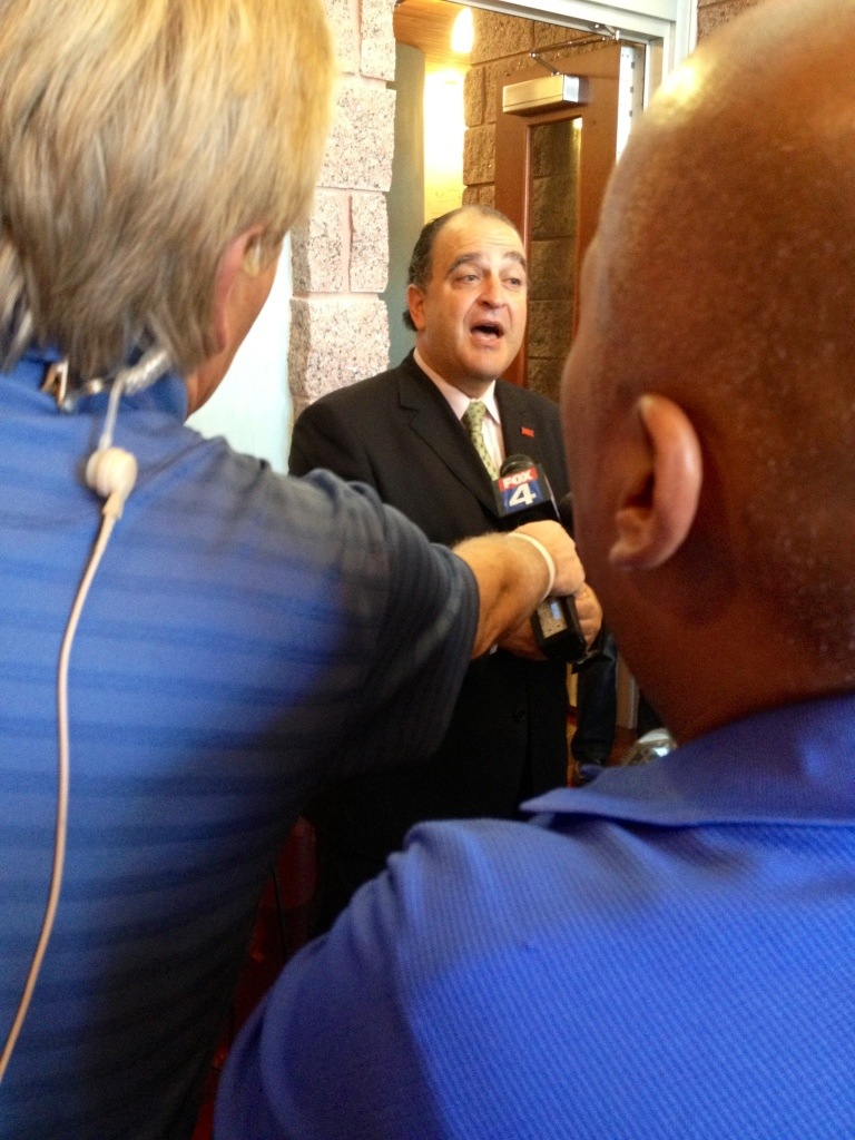 After he spoke of multi family and zoning around Frisco, he ended the talk and all 3 news crews were in his face asking about the Dallas Cowboys move.