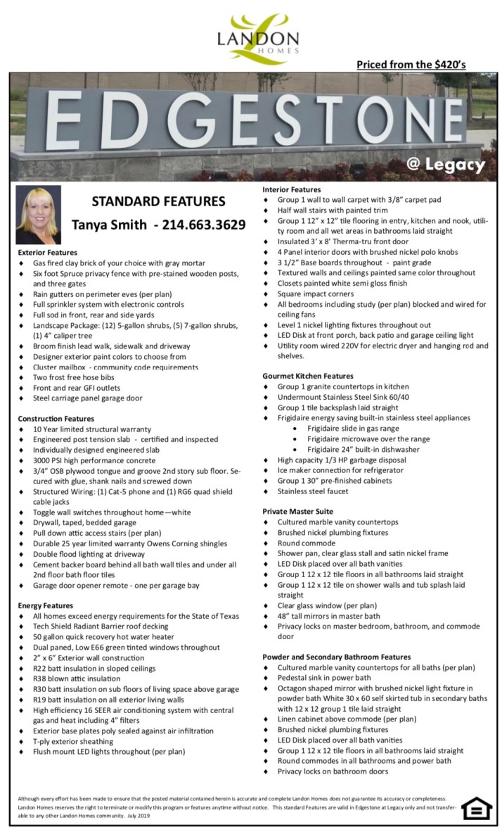 For more on Edgewood in Frisco or Shaddock, Meritage and Southgate Homes, text or call Brad Holden today at (469)733-2723 for a tour of the community or how I can save you thousands on negotiations at contract!