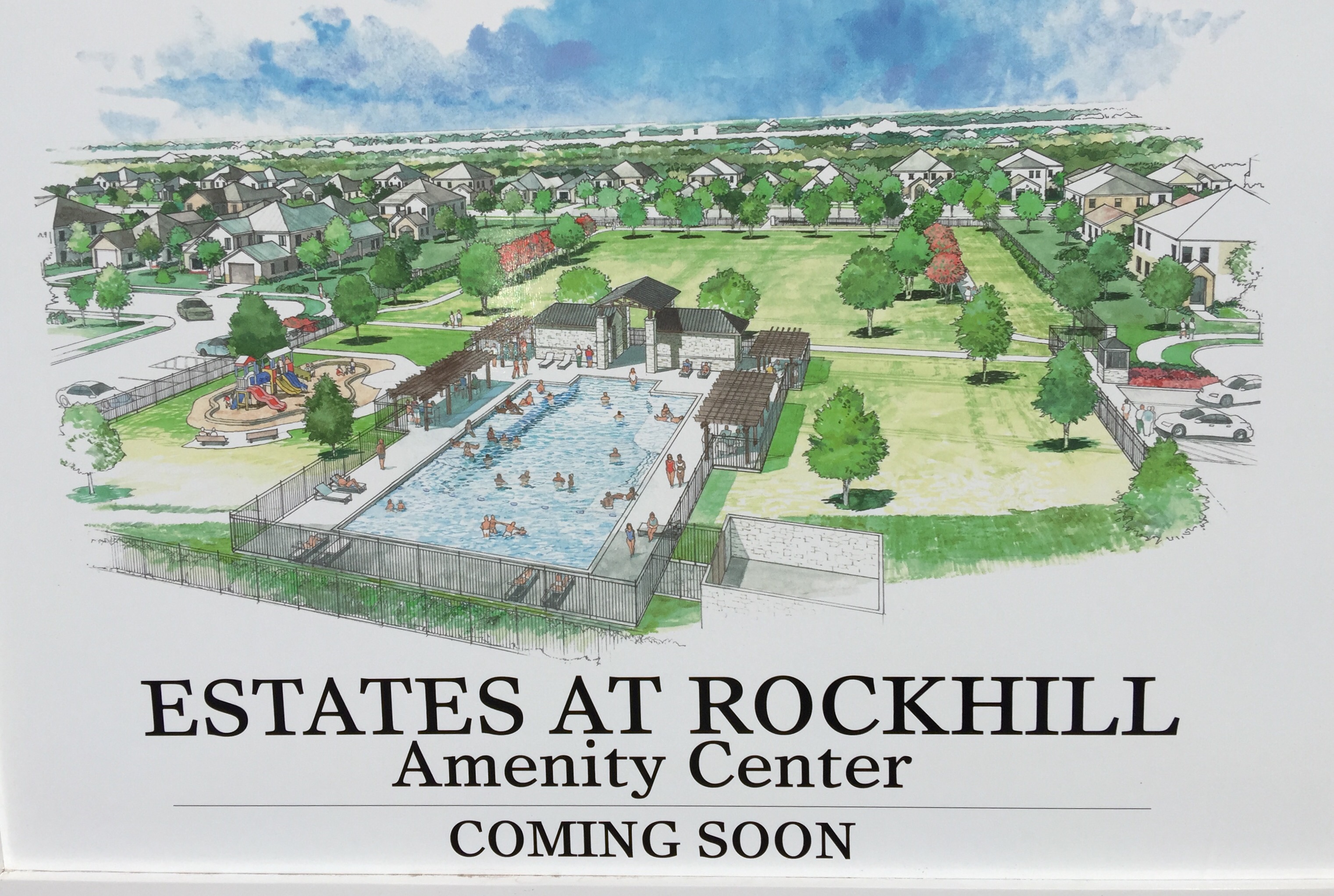 The amenities for the Estates at Rockhill plan to include a community pool, a creative play structure, multiple parks and a hike and bike trail. The developer is hoping to have the Amenity Center done by the end of September.