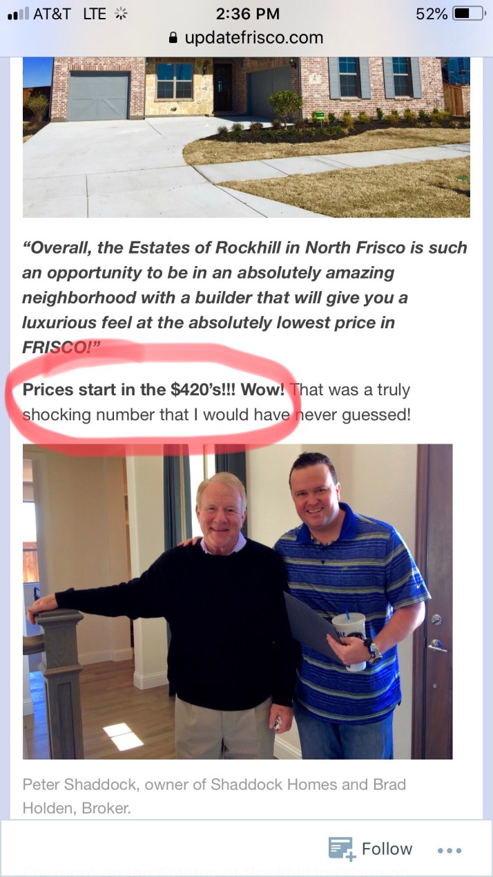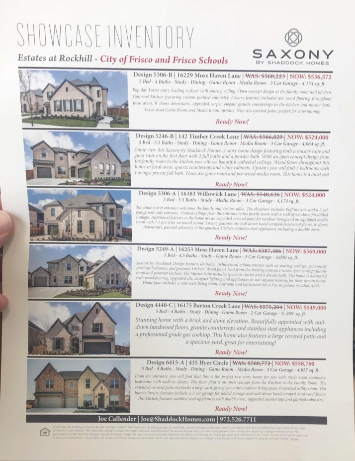 Shaddock Homes at the Estates at Rock Hill in Frisco . . . I told you so.