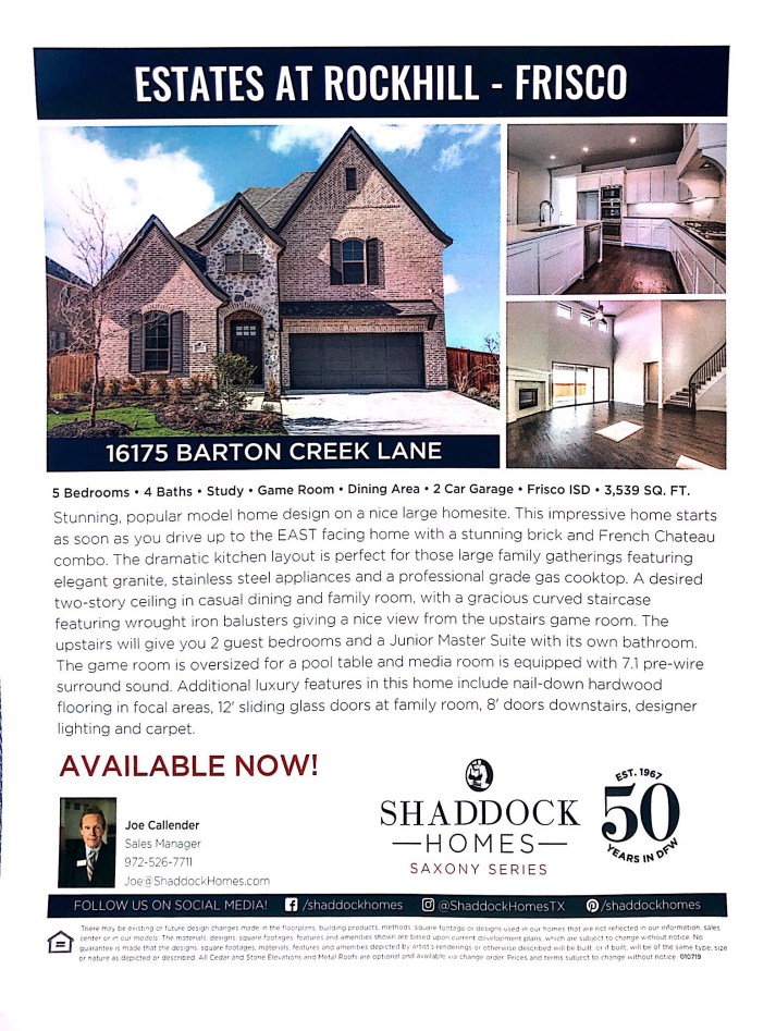 For more info on Shaddock Homes bottom line price on this home at the Estates of Rockhill in Frisco, text or call Brad Holden today at (469)733-2723.