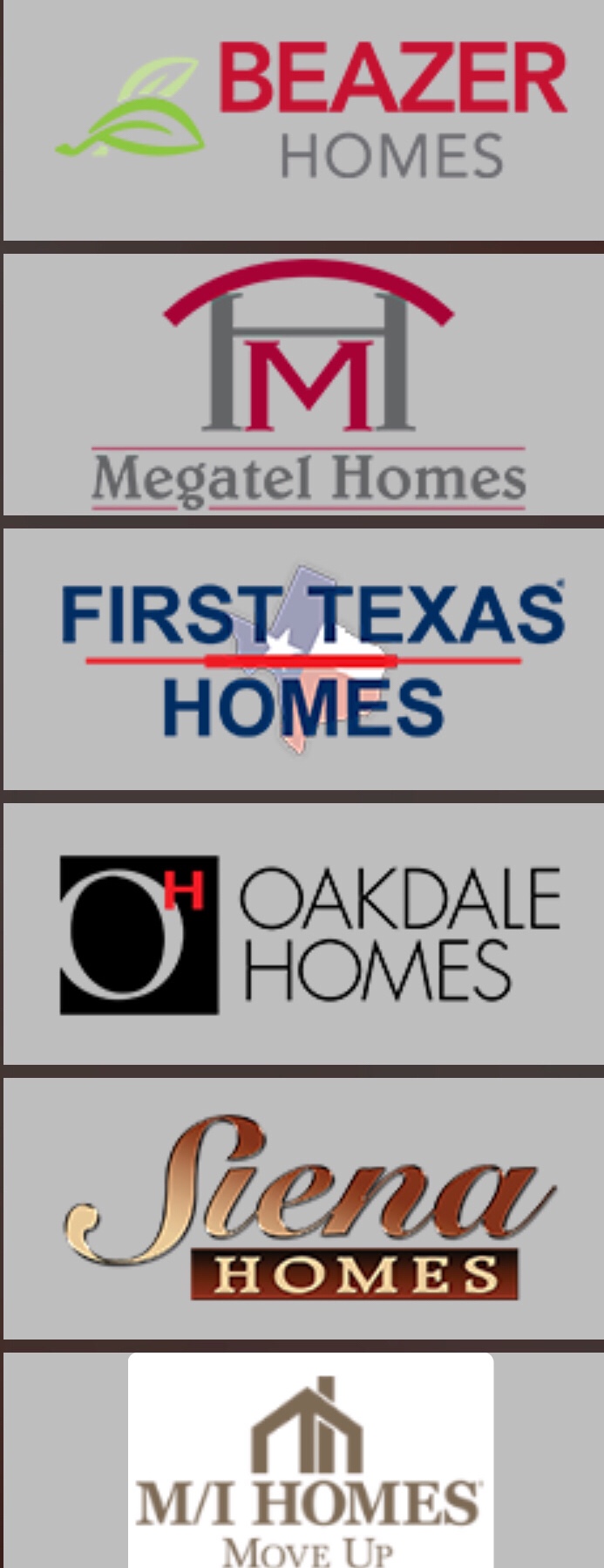 Beazer Homes – Megatel Homes – First Texas Homes – Oakdale Homes – Siena Homes – M/I Homes