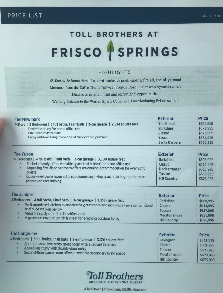 Toll Brothers at Frisco Springs in Frisco has their trailer up and starting pre-sales!