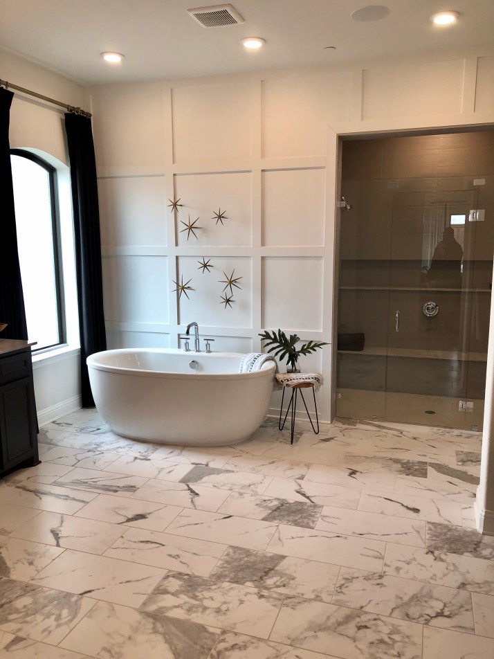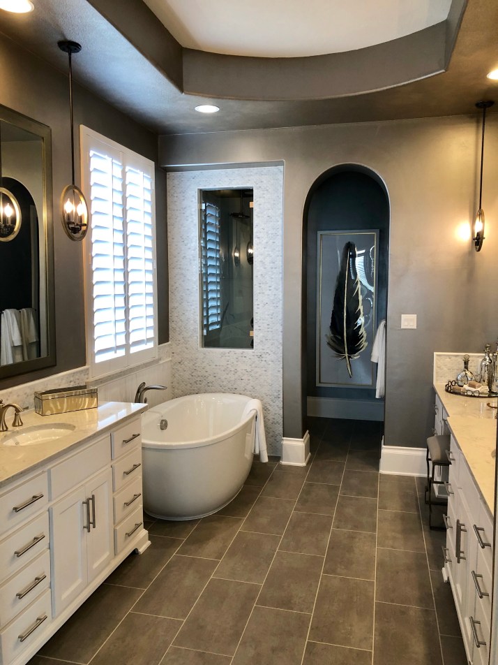 Master bath set up nicely with freestanding tub, double spouts on the shower and to die for closets.