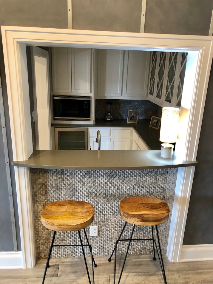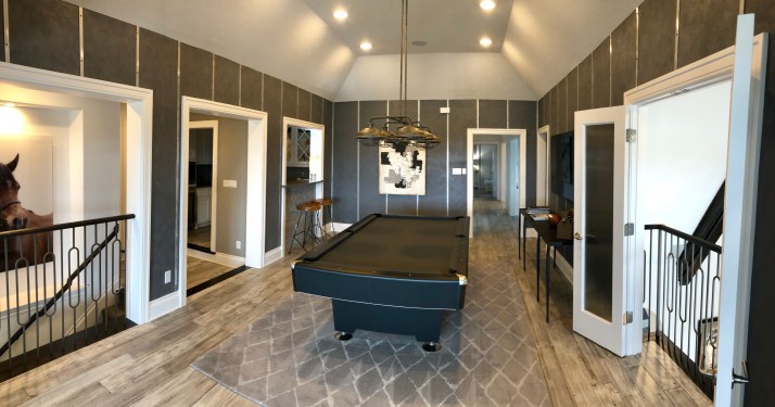 Game room is stunning with a pool table as the centerpiece with a wet bar and the architecture is on point.