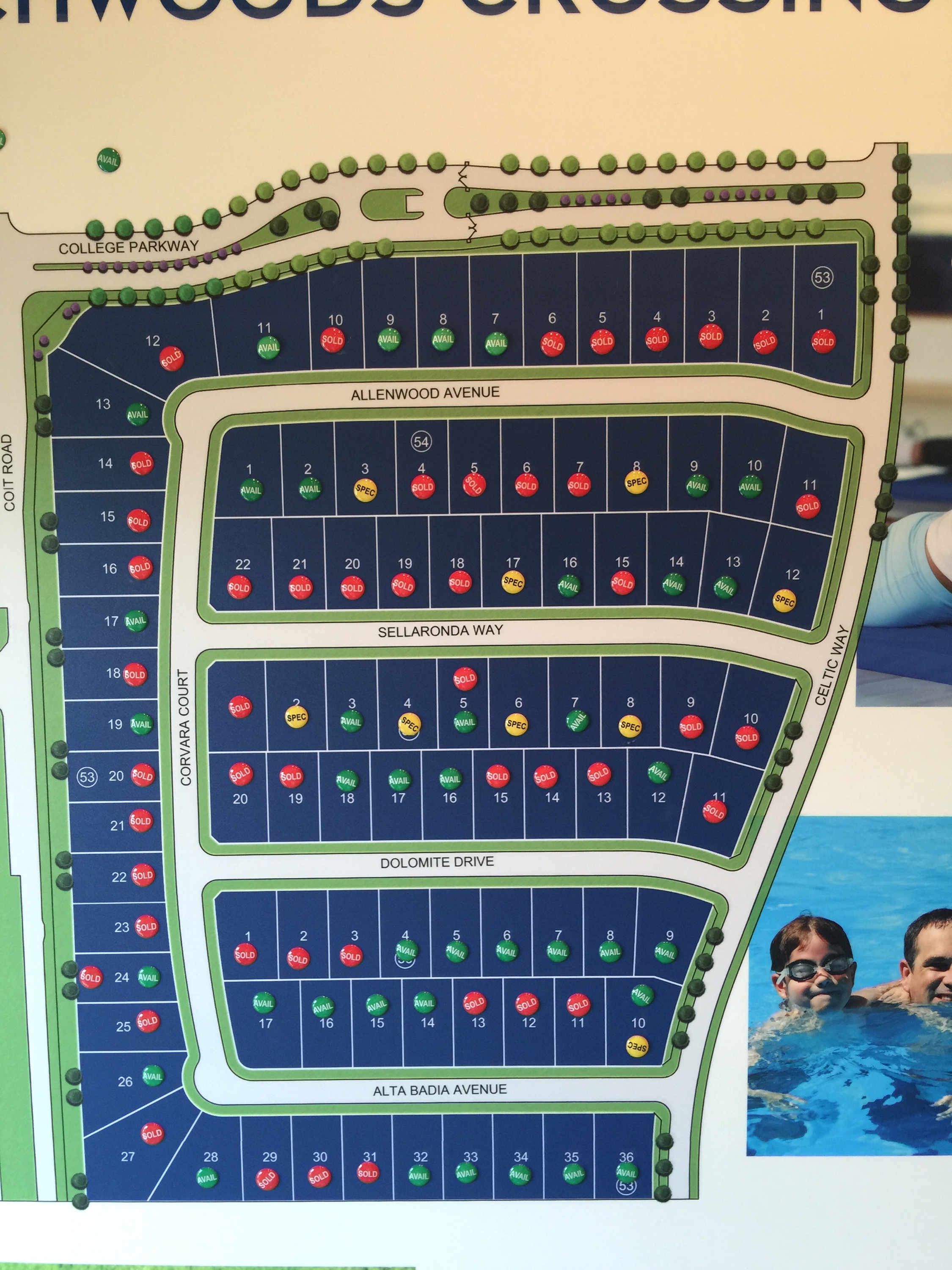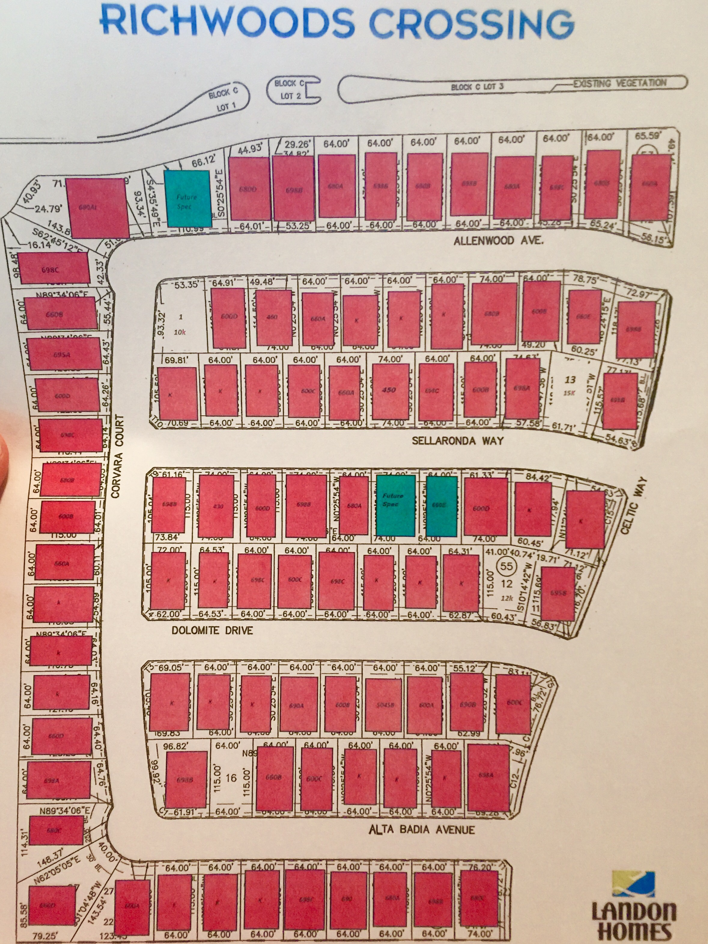Out of the lots not sold, 27 are spec homes which will be ready a lot sooner than a build job. This section of lots are standard at 70 foot wide by 100 foot deep.