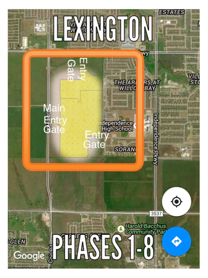 Lexington will be Gated with 3 gates, and initially start out with a total of 8 Phases and 634 lots. Landon Development did purchase another approximate 134 acres from Brinkmann in July of 2015 that most likely will be additional phases to Lexington. This new tract of land is located South of the current phases and continues down to Main Street.