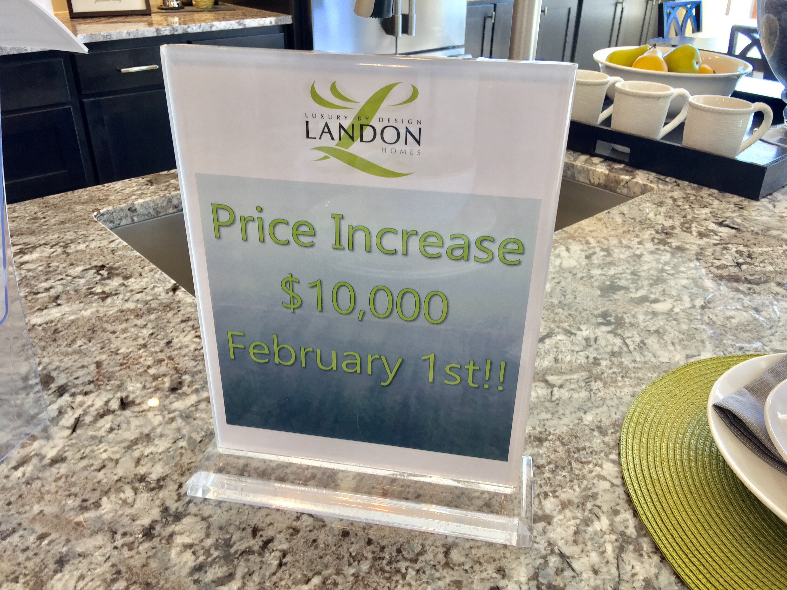 As pretty much every builder does in this hot market, prices will increased for John R Landon homes in the Lexington Country section $10,000 on February 1st, 2017.