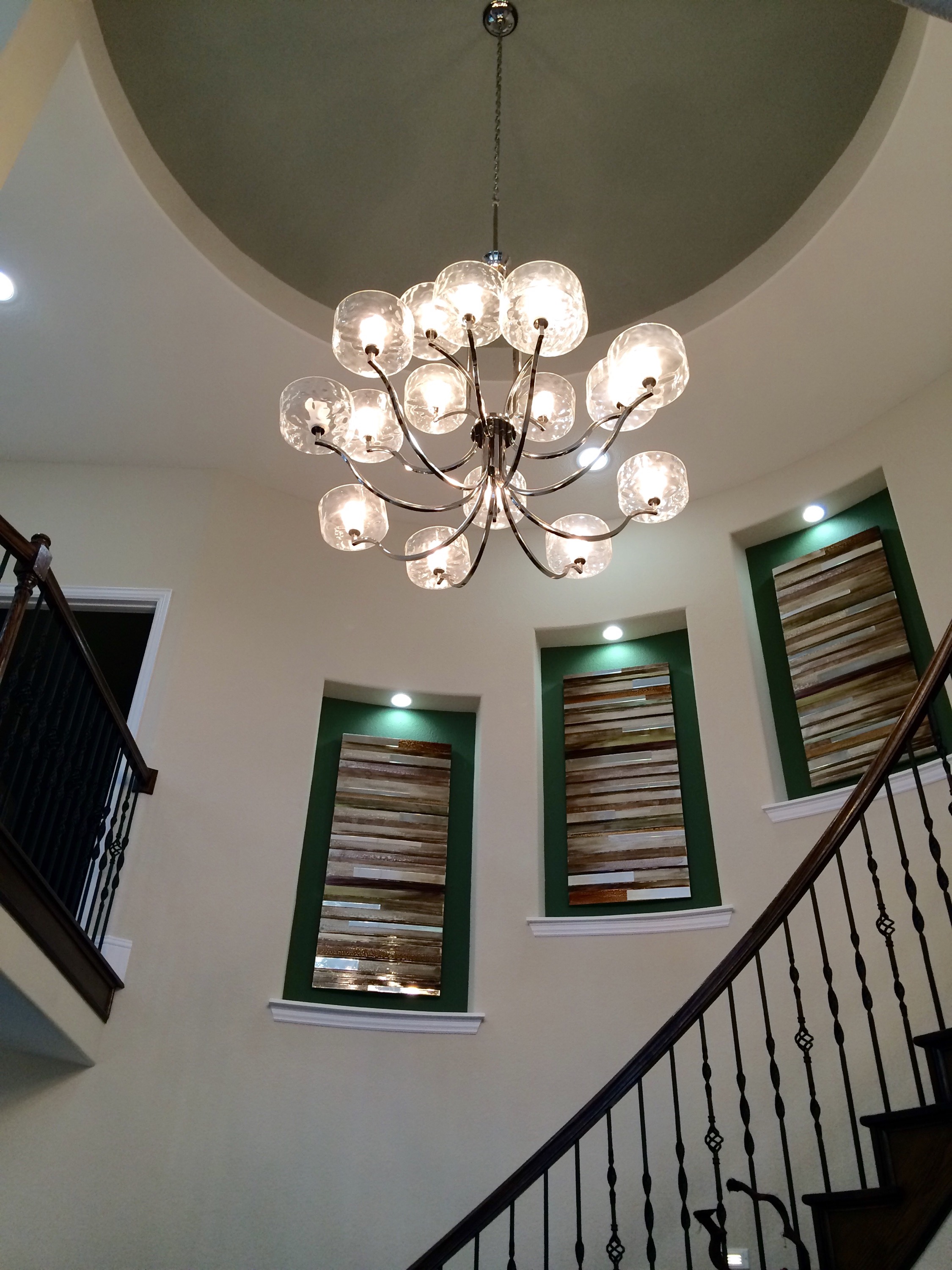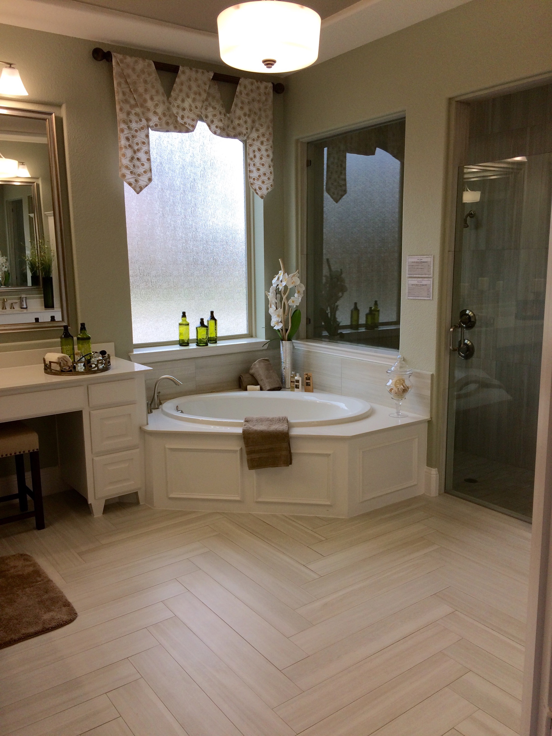 The massive wall of windows and completely tiled wall in the TV niche. VERY nice touch!