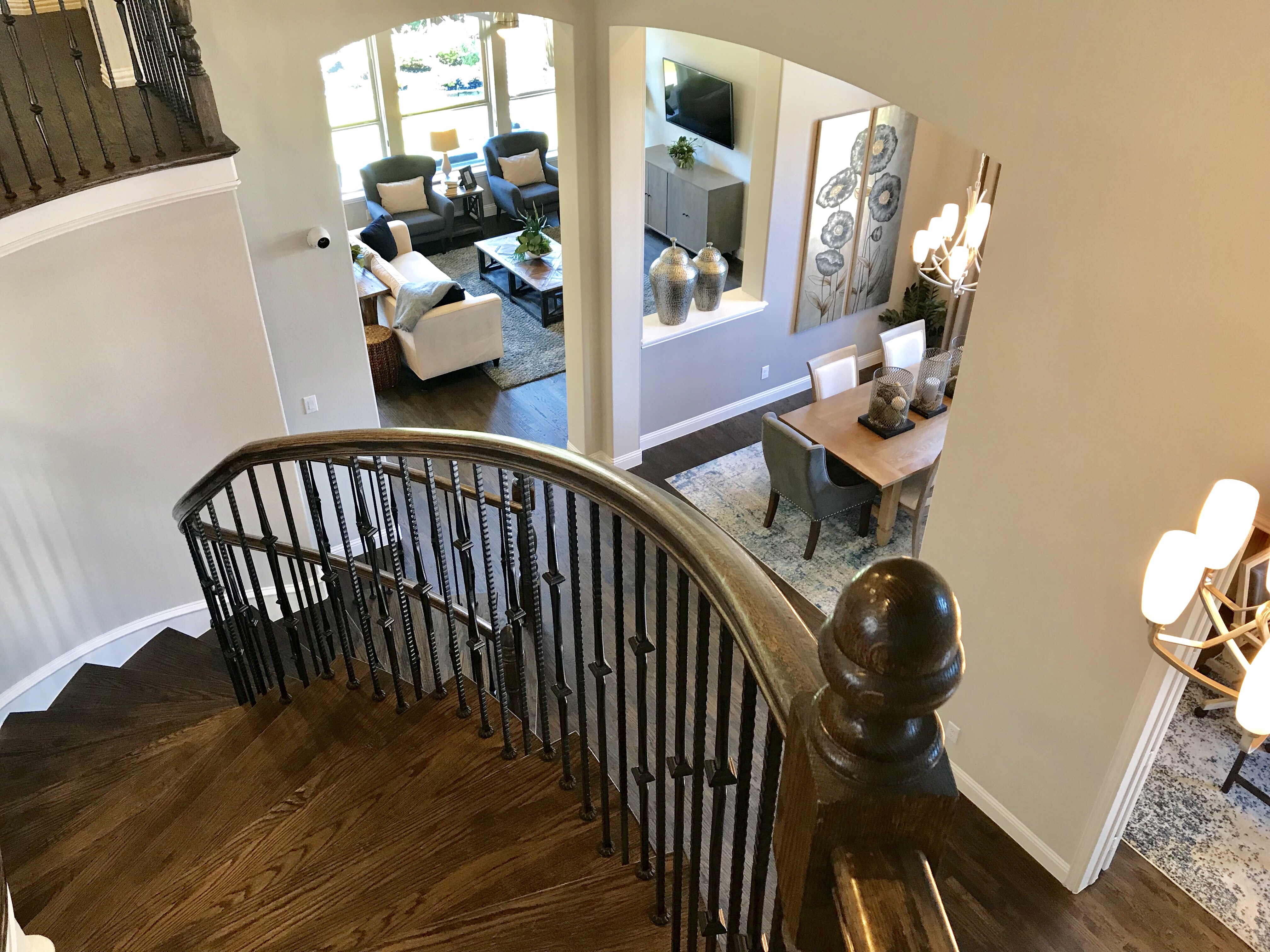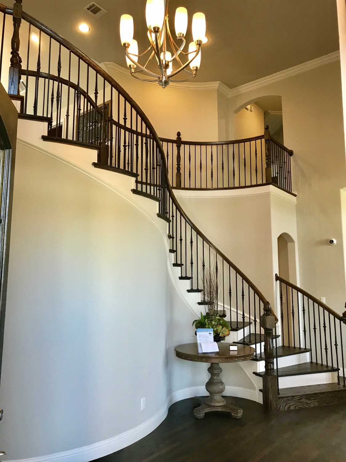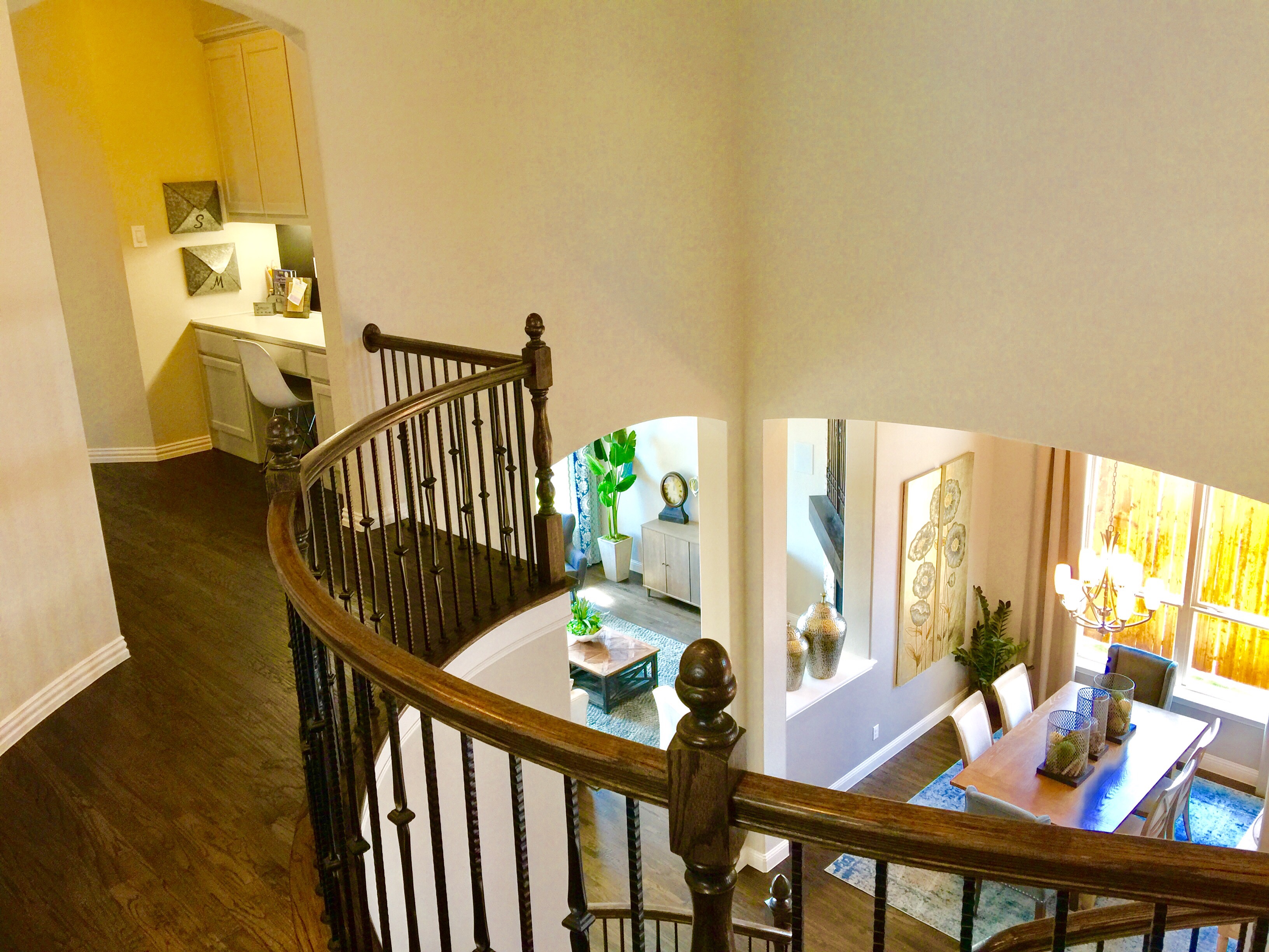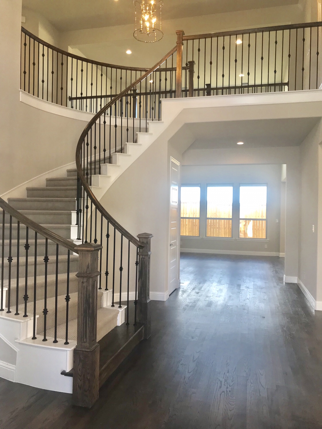 The picture above is a representative photo of what the entry the Shaddock 5238 plan will look like walking into the two story foyer. The beautiful spiral staircase adds to the architectural design most buyers look for in a new home.