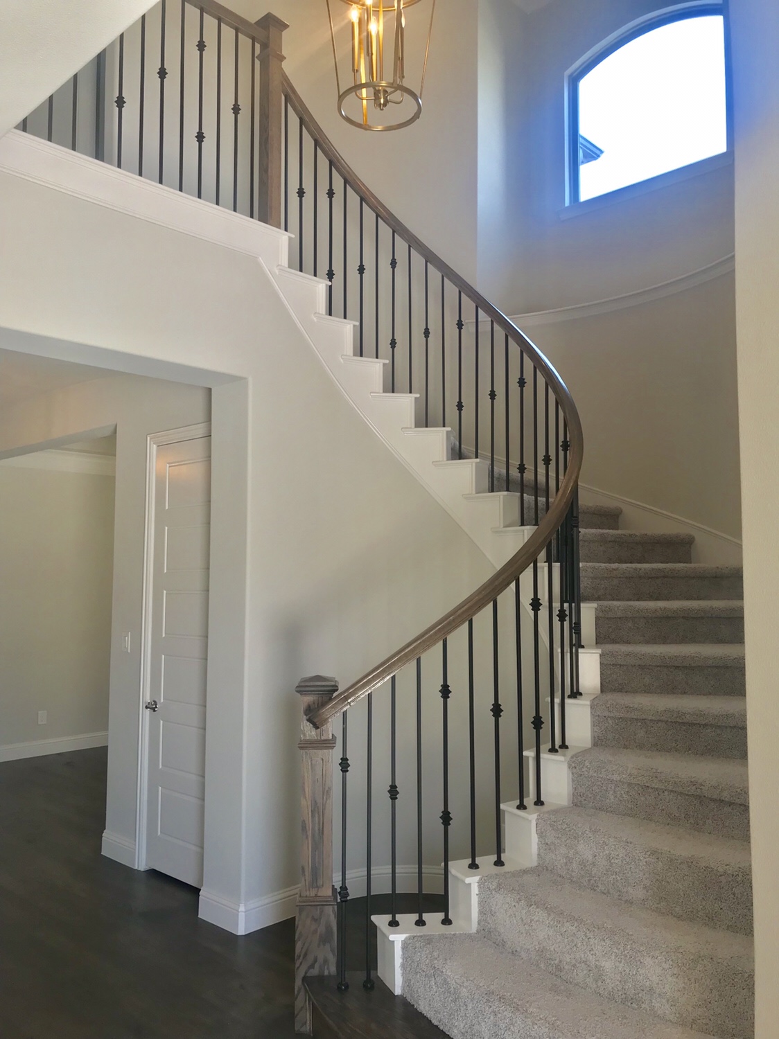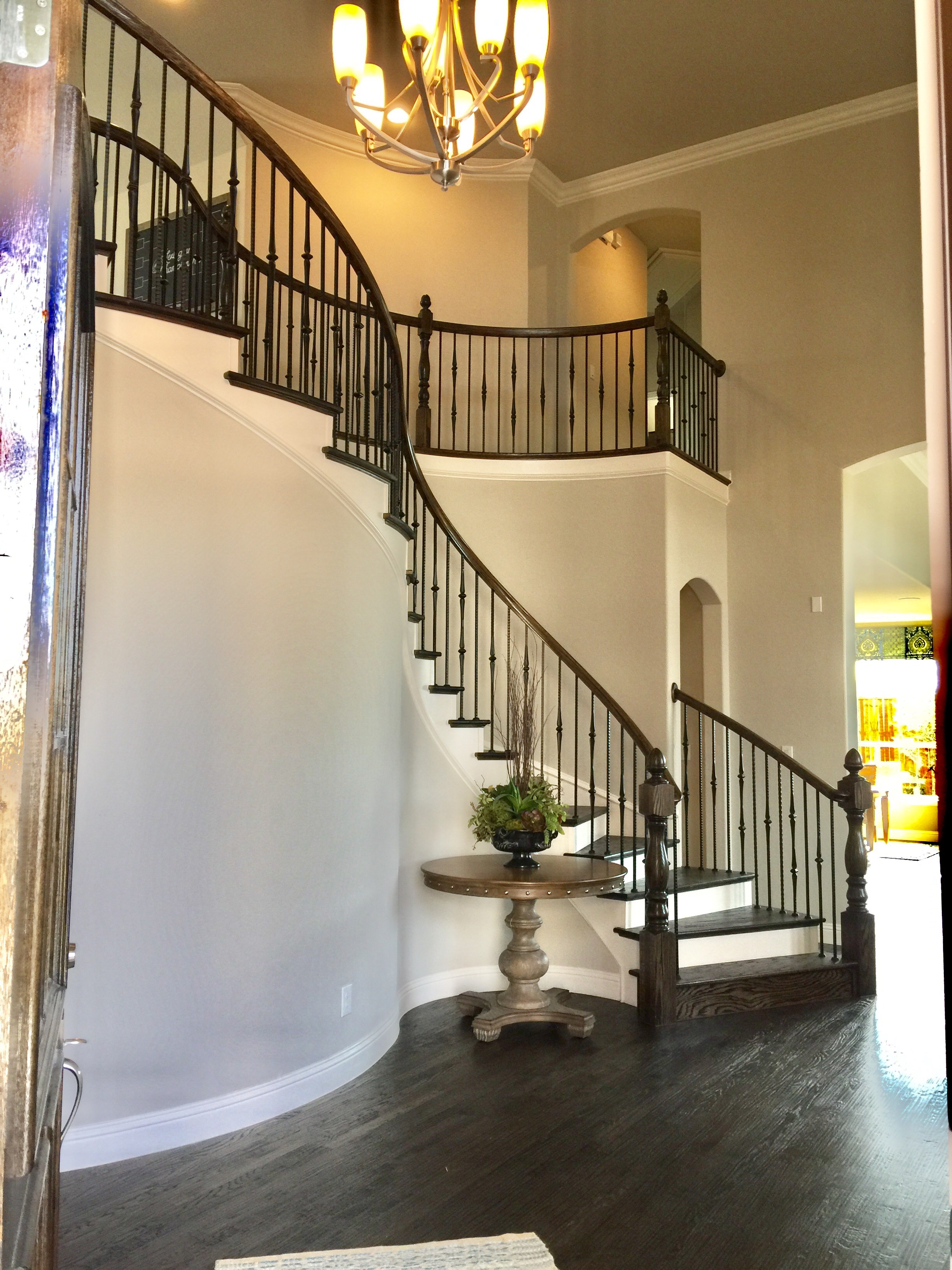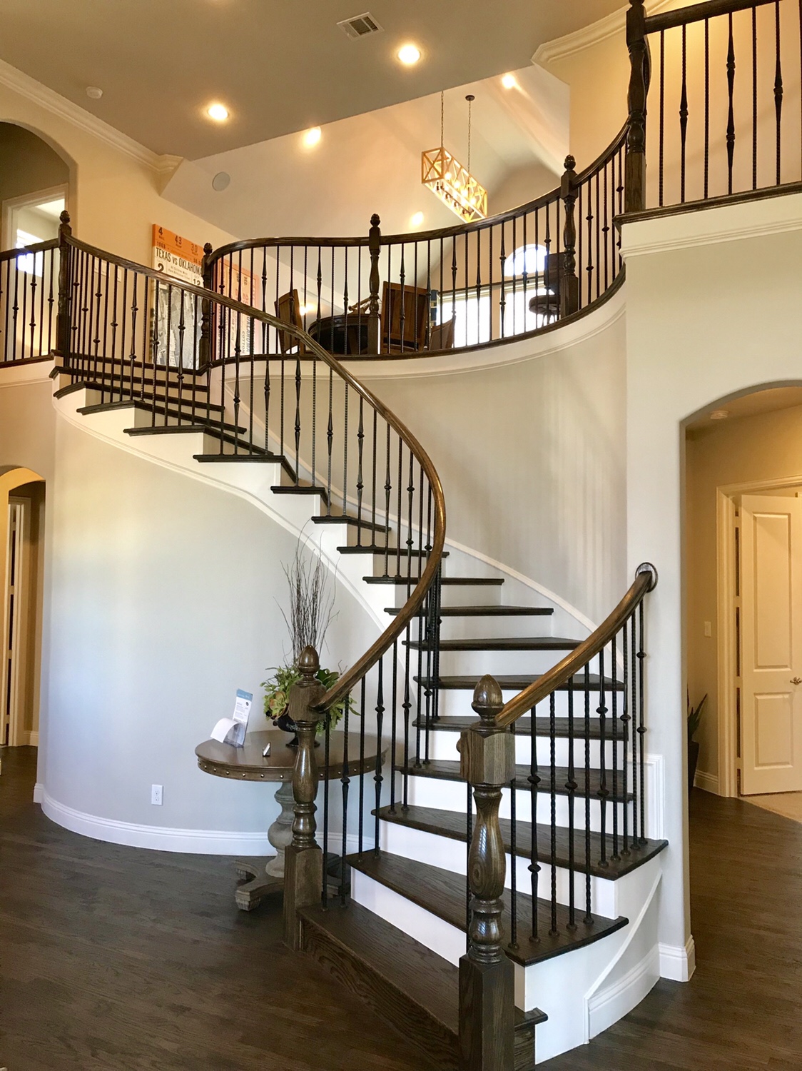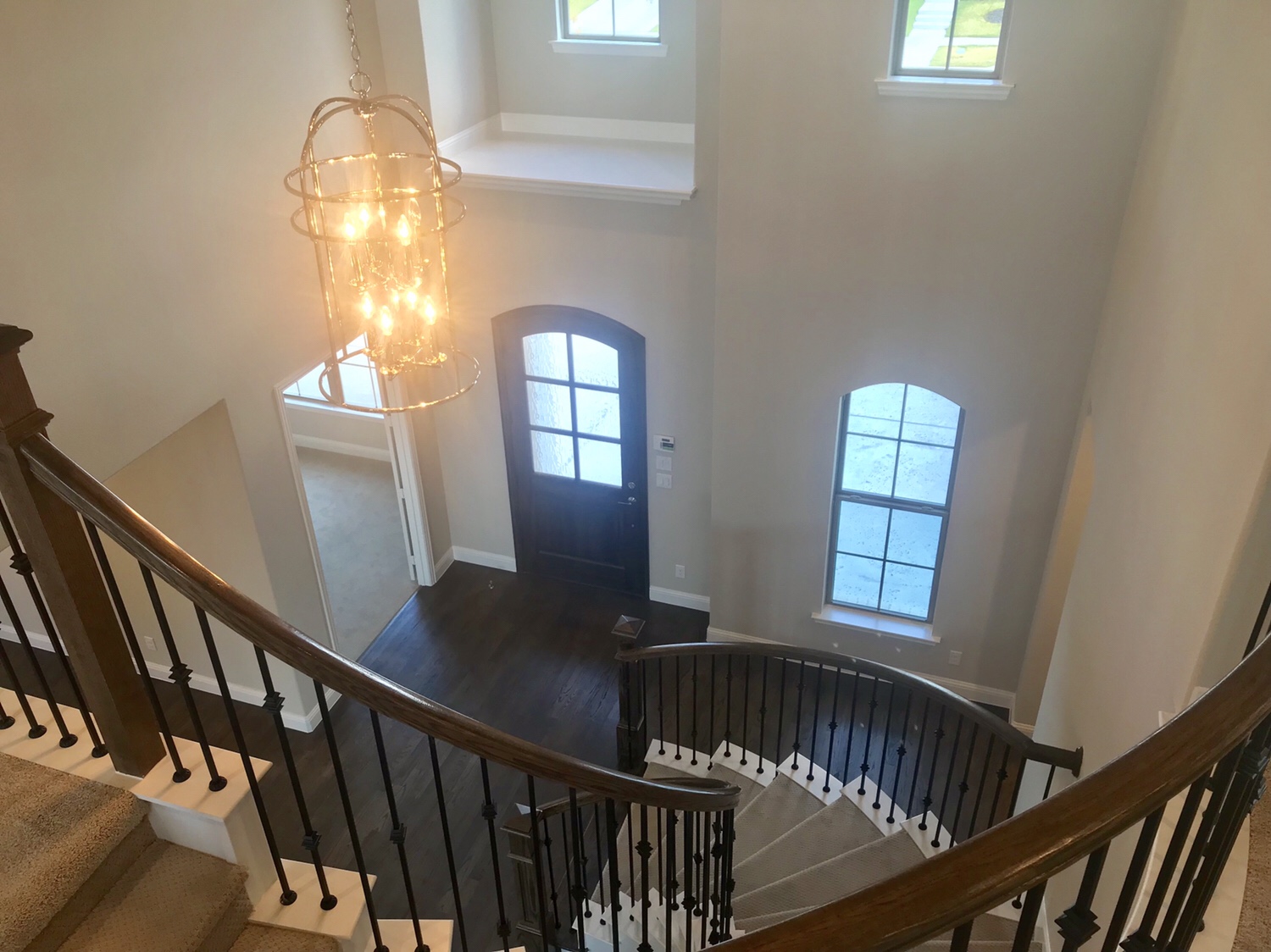 The picture above is a representative photo of what the entry the Shaddock 5238 plan will look like walking into the two story foyer. The beautiful spiral staircase adds to the architectural design most buyers look for in a new home.