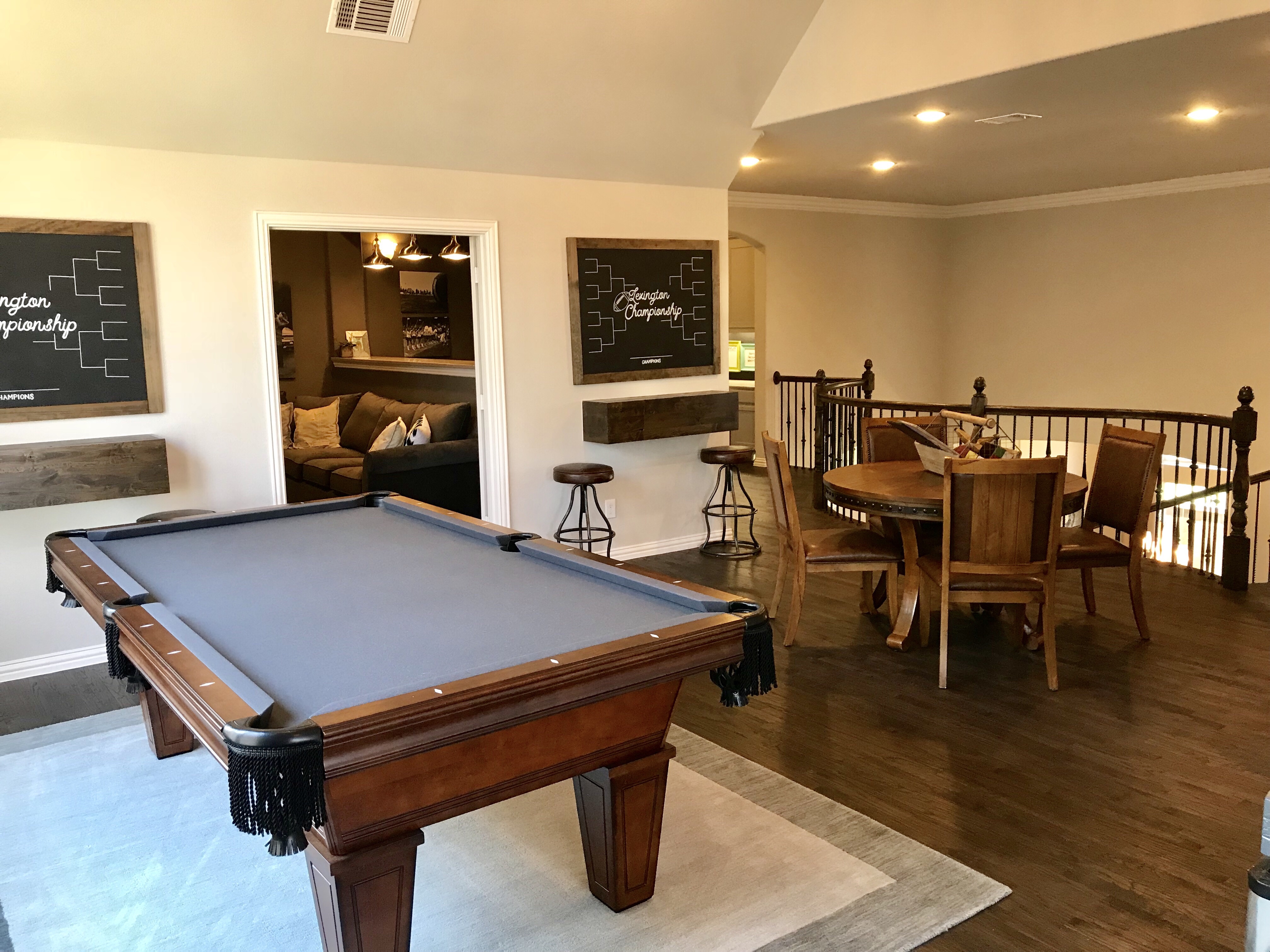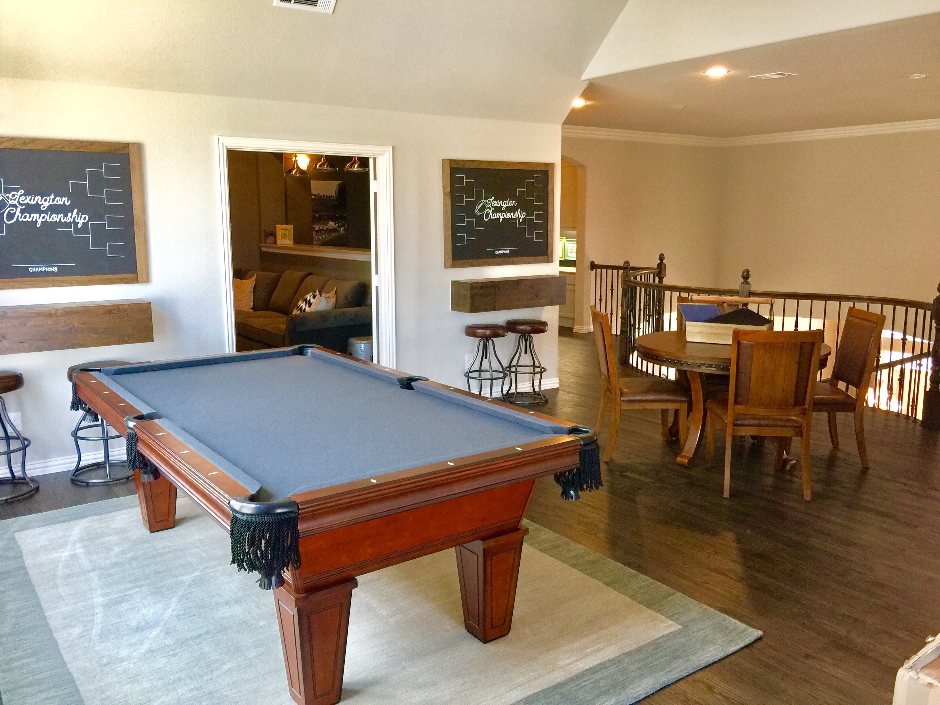 The entry and party room are decked out and a great addition for home owners to use for poker nights or birthday parties.