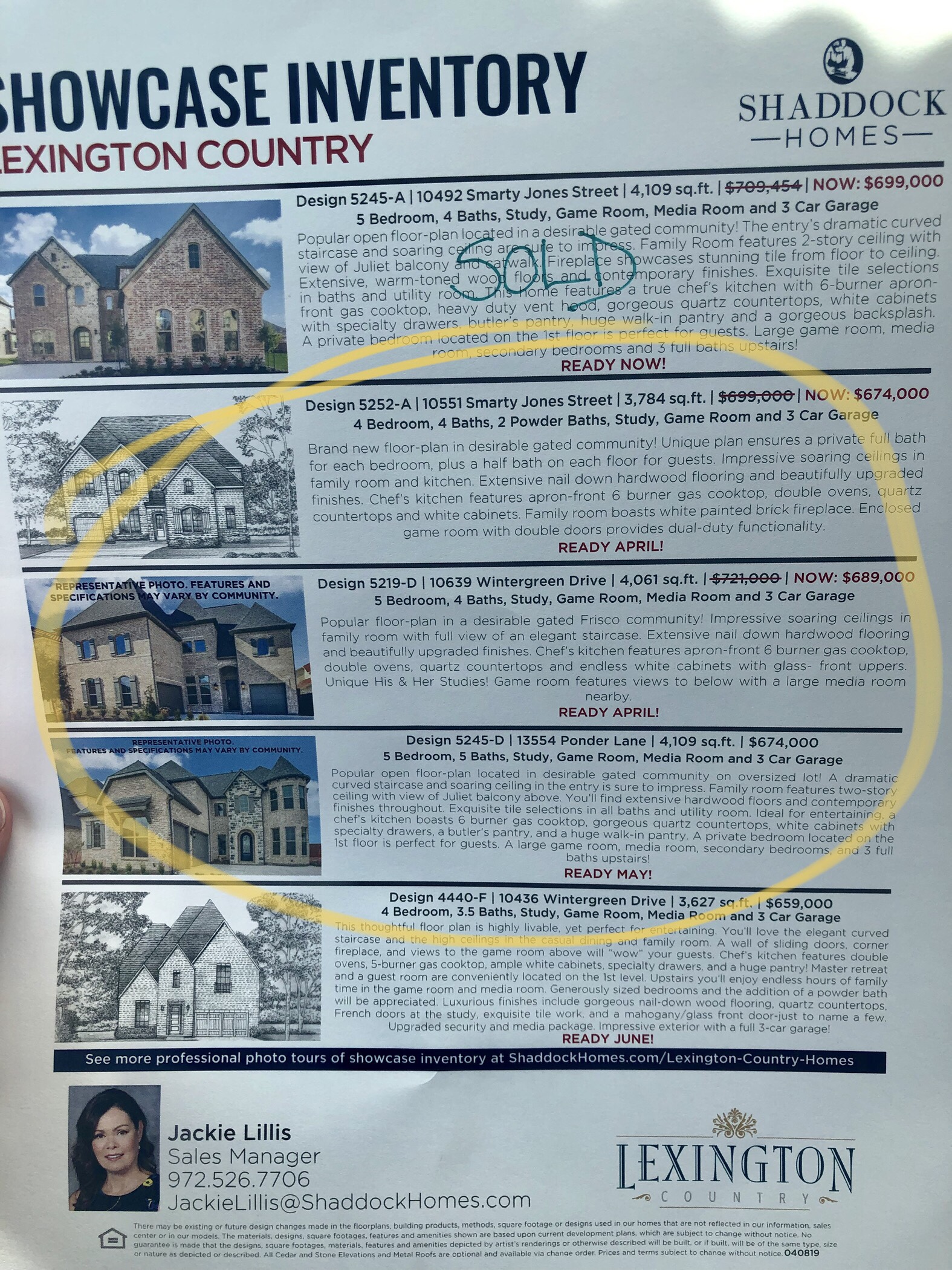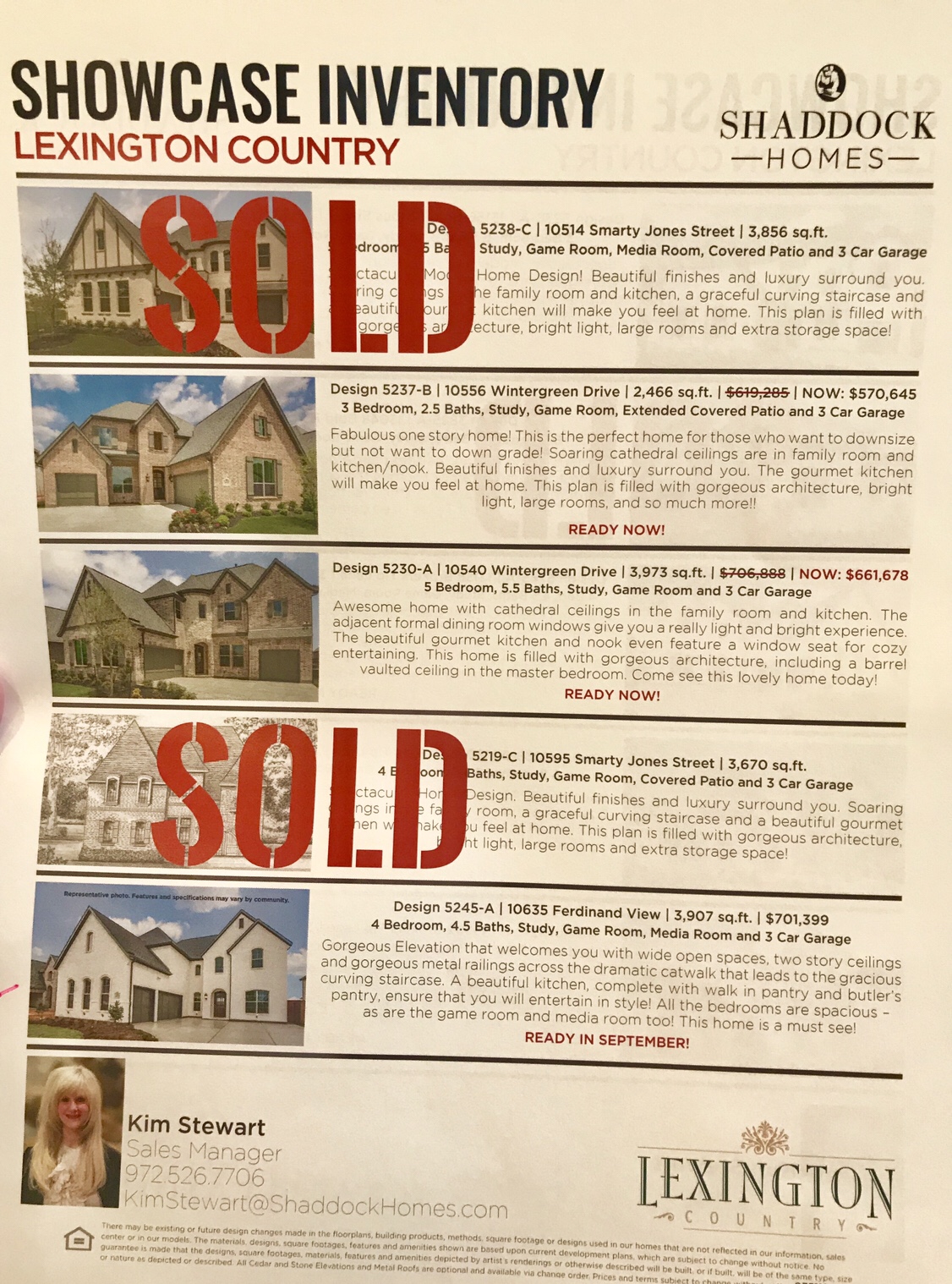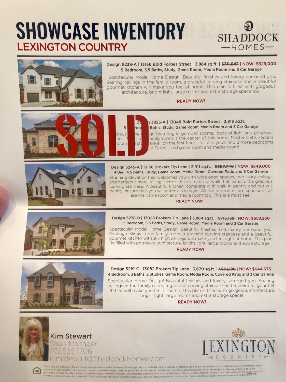 These are a deal and Shaddock wants them sold. So if you have any additional questions or want to tour the Lexington Neighborhood and the other builders, text or call Brad Holden today at (469)733-2723.