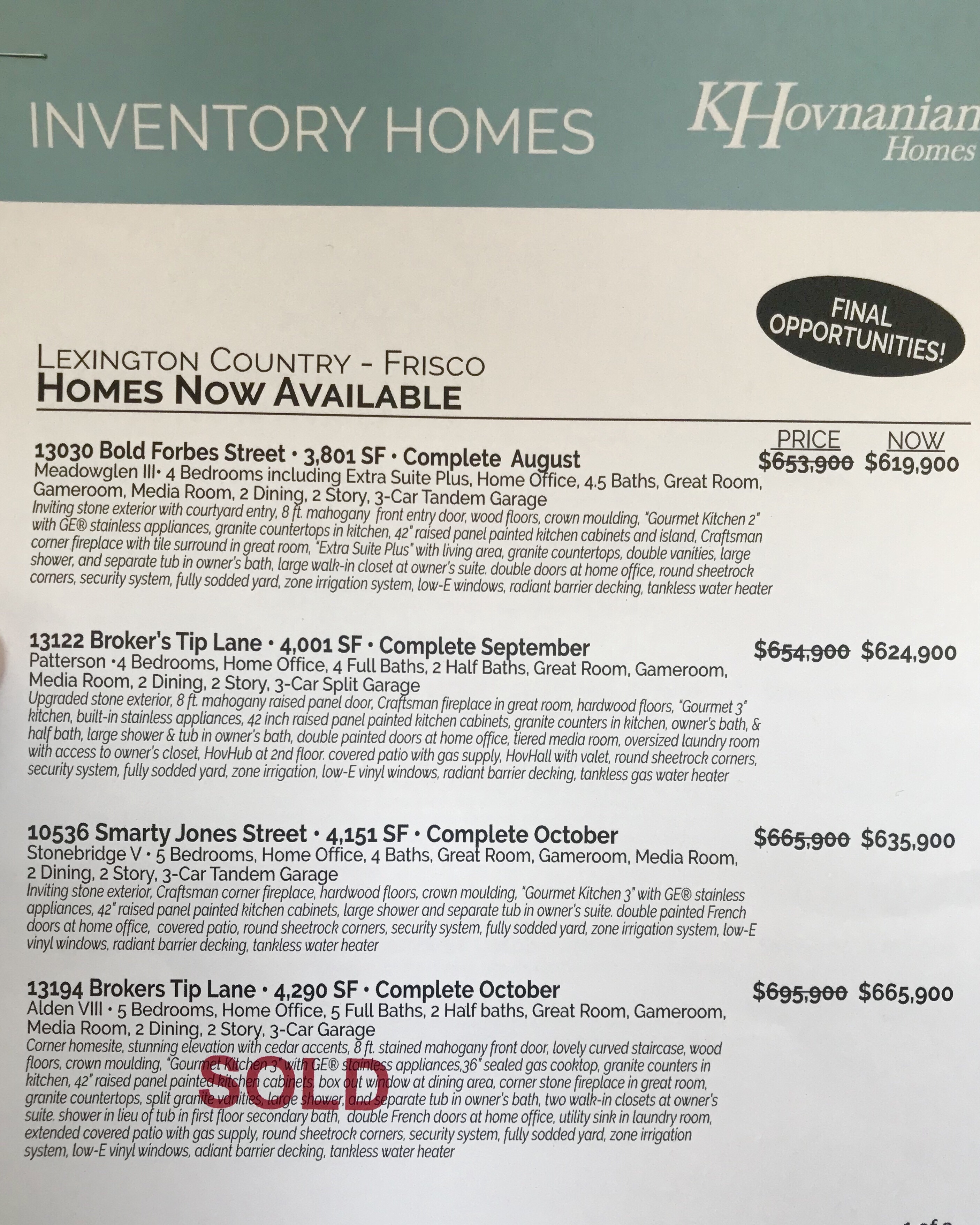 Are they bad homes? Nope, not at all. Top notch local luxury builder that puts in all the upgrades a buyer wants in Lexington a gated community with homes over the 1 Million dollar mark in Frisco.