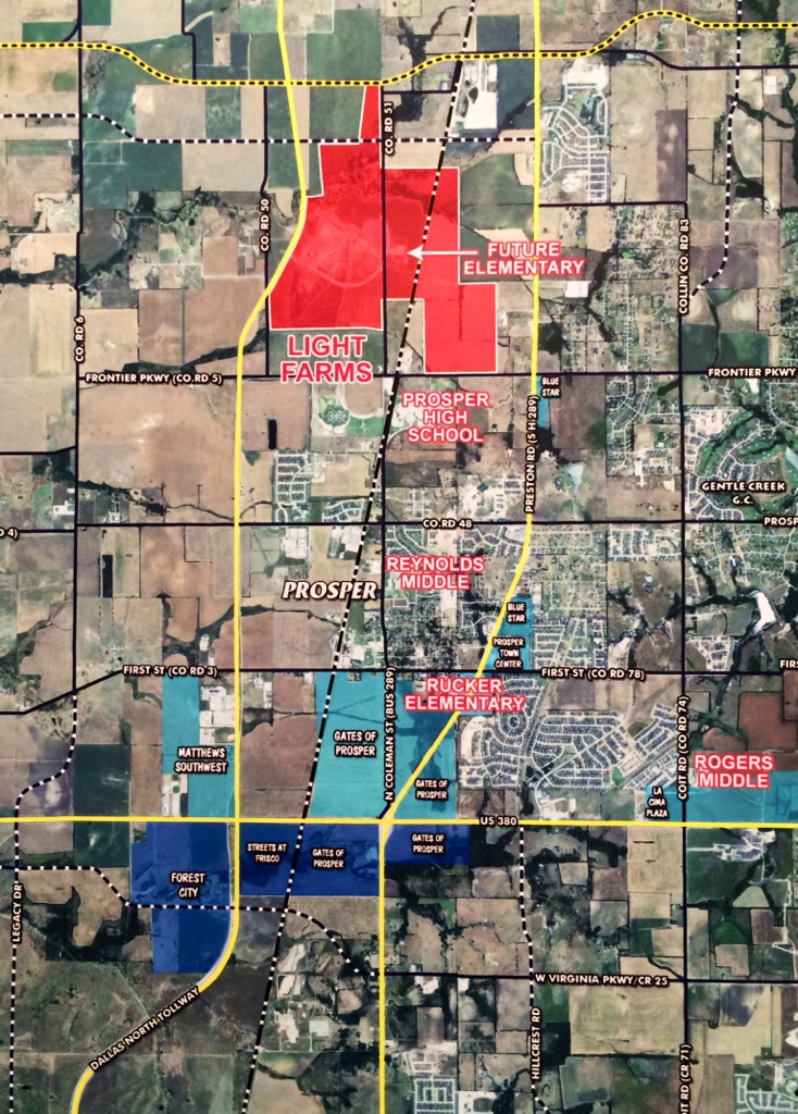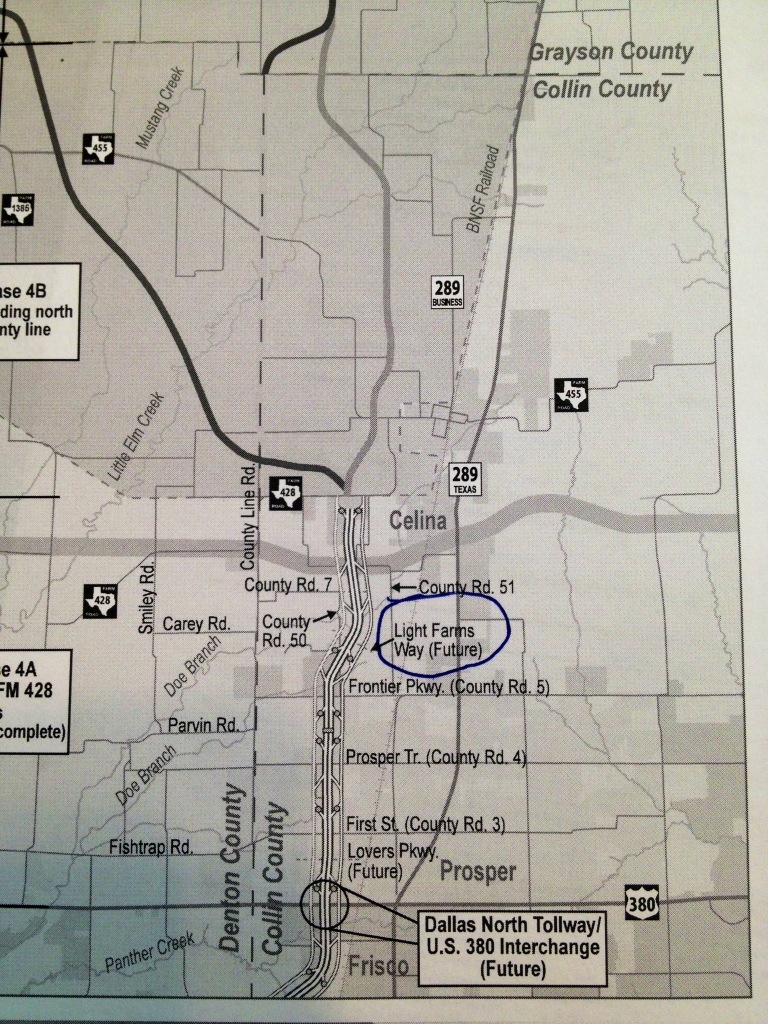 You can see the location in Red. If you follow the Tollroad directly South to the intersection of Highway 380 and North Dallas Tollroad, you will see three developments that are approved and well underway! This alone will start a tremendous amount of growth in the North sector and will ultimately create a new destination for buyers to choose from with Windsong Ranch also a mile away from the development.