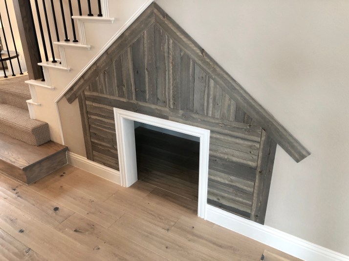 Adolphus uses unused space very well like this doggie spot under the stairs! Brilliant!