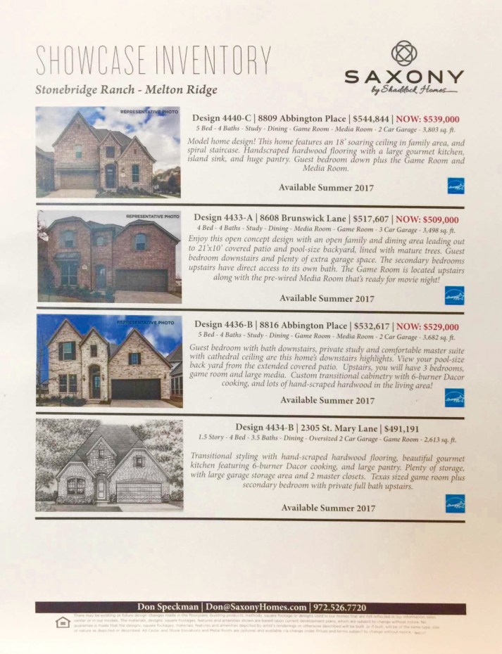 In Stonebridge Ranch at Melton Ridge, Shaddock Homes has a beautiful one-story plan read for immediate move in! (Stonebridge Ranch in McKinney is the closest thing to a resort in all of DFW!)