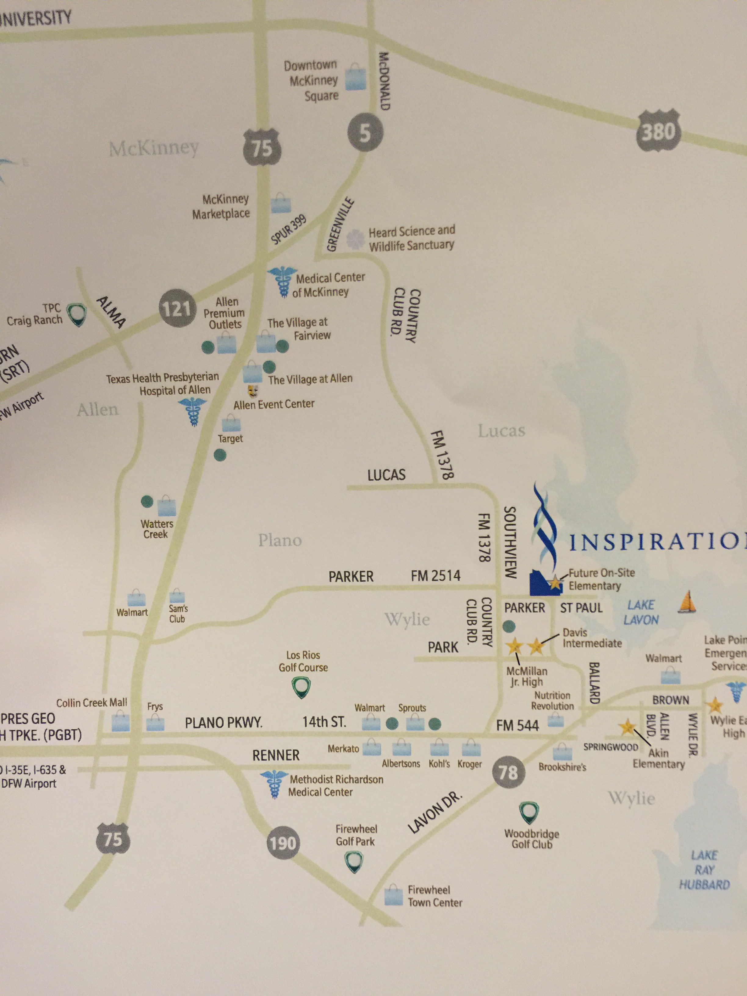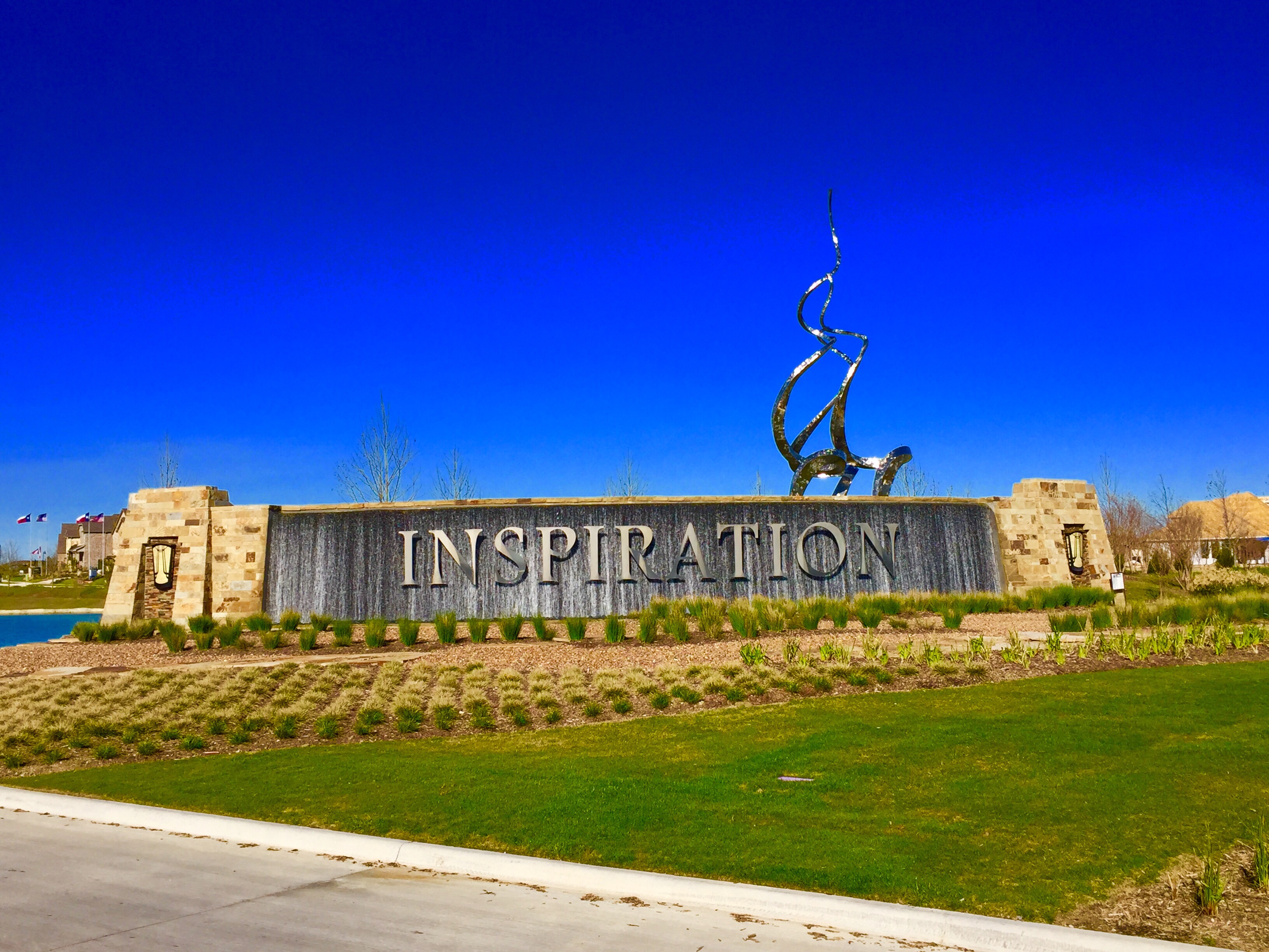 Inspiration truly might have the most beautiful drive up with an entry, waterfall sign that at night has laser beams shooting out of it! And the two large ponds with a beautiful greenish blue water also help differentiate this development from any other in the North DFW area.