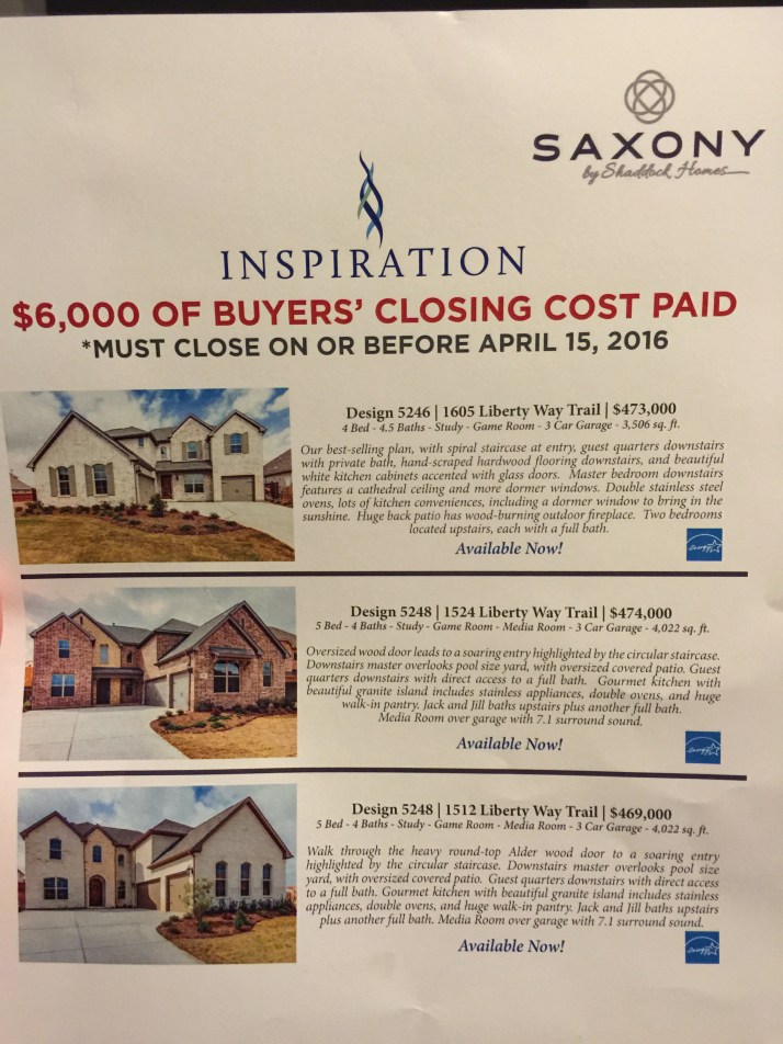 But $50,000 will get you a lot if you are looking to build new and in Frisco. Wow!