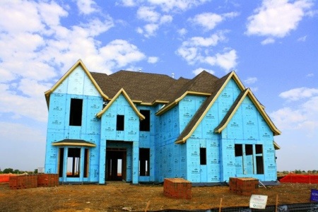 The blue board shows that their quality of building is legit with a perfect clean 100% covered insulated home.