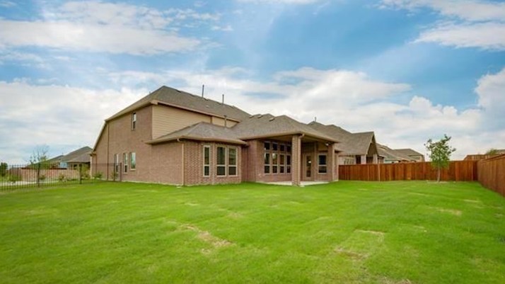 The very popular 5238 plan (shown above) by Shaddock Homes is one of my favorites in Phillips Creek Ranch. – Available for delivery in March, this 5 bedroom, 4.5 bath, 3 car garage, 3861 square foot home with dramatic spiral staircase in the foyer, rounded study, cathedral style ceilings, bench seat in kitchen nook, over sized walk in closet and Texas style media room, is listed at $667,287. My clients will get this for under $640,000!