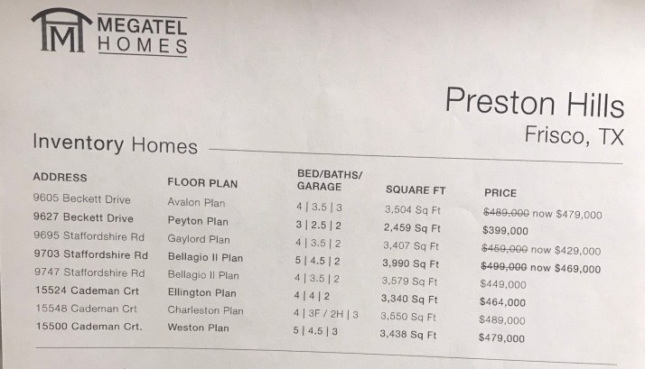Megatel Homes at Preston Hills in Frisco has 8 Inventory homes starting under $400,000!