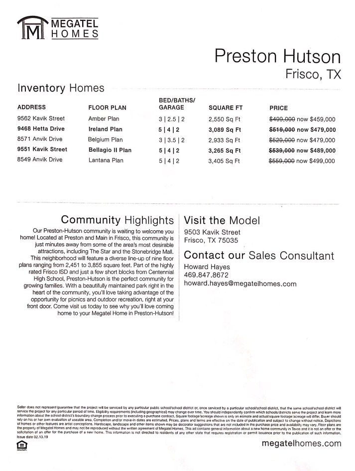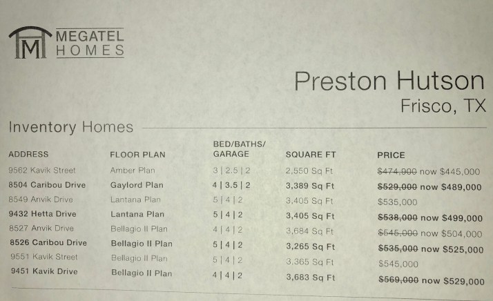 For more on Megatel Homes at Preston Hutson in Frisco text or call Brad Holden today for the builders bottom line prices on their specs or how my rebate can save you thousands!