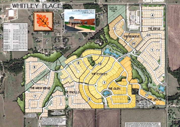 In 2008, the visionary Dale Clark of Warren Clark Development, purchased the 320 acre Whitley Place development in Prosper. He purchased three parcels of land to maximize the vision for the 540 lot development.